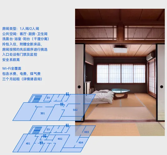 捺染寮是原「株式会社宮島捺染型」印染工厂的宮島家族住宅改造而来。是位于尚藝舎言語学院同一建筑内的学生宿舍。连接了留学生的在日生活与学习。