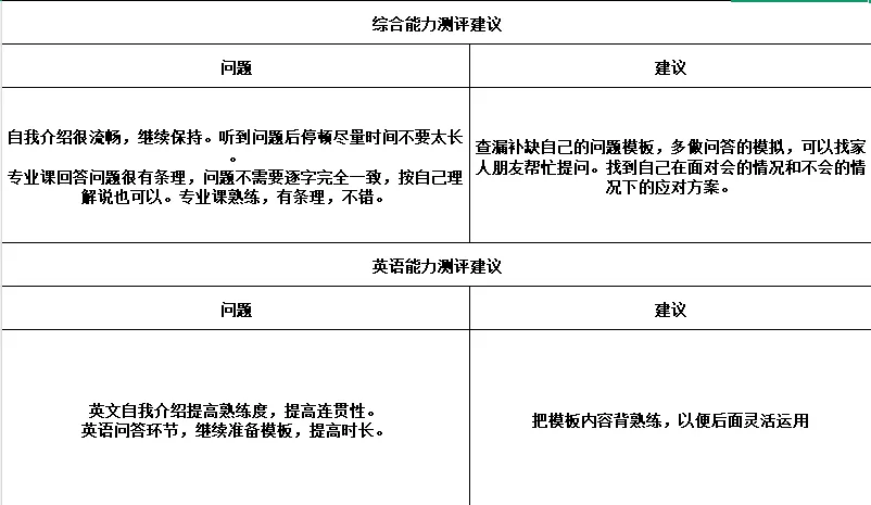 ③点评指导,面试老师会针对本场模拟复试的表现,给予点评,指出学生在面试过程中存在的漏洞,并提供指导建议。