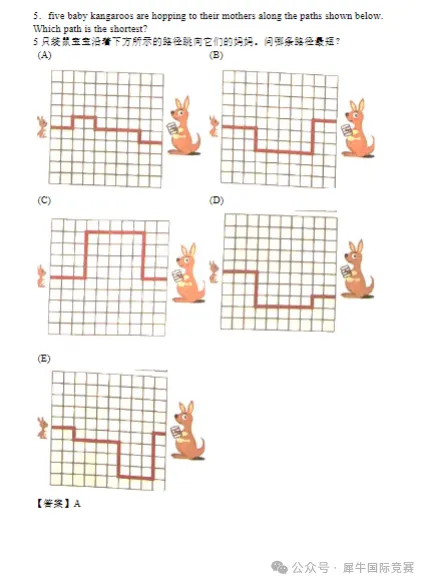 袋鼠竞赛被誉为“国际竞赛启蒙之选”,其难度和题型非常适合作为后续美国AMC8、澳洲AMC等其他国际知名数学竞赛,打下坚实基础!