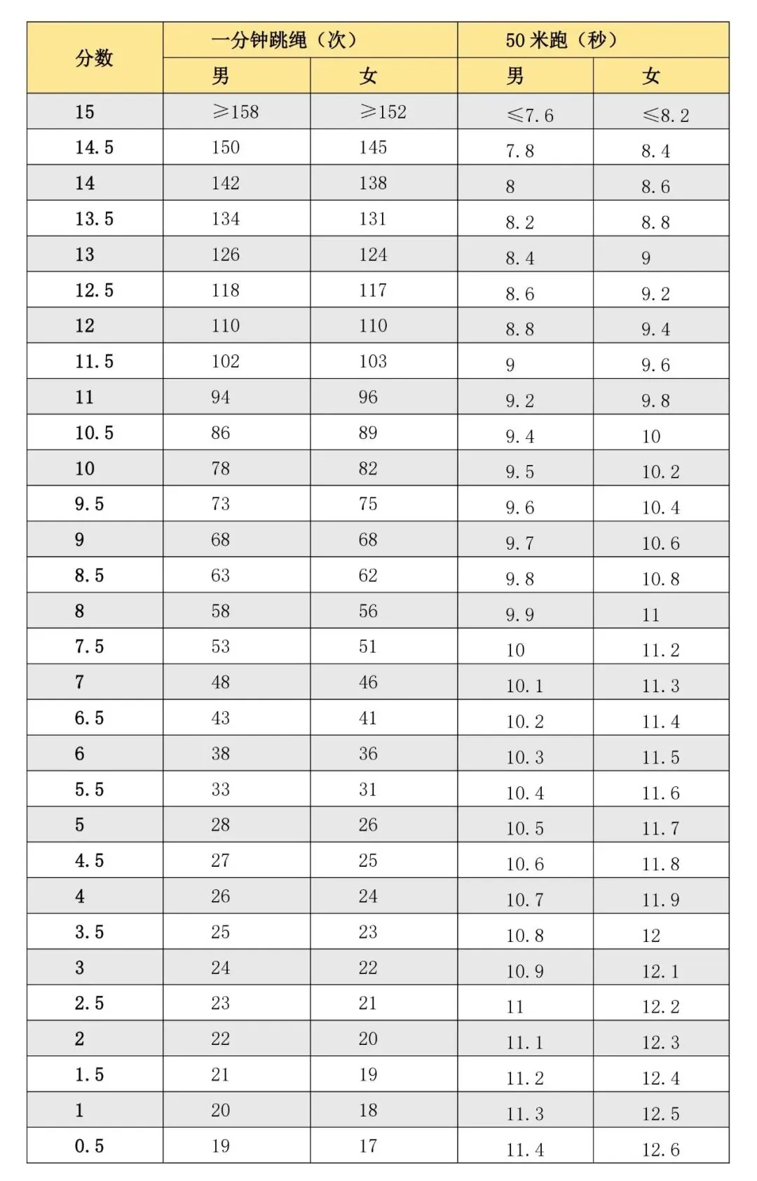 考生根据个人特长从篮球、足球、排球、游泳、50米跑、坐位体前屈、跳绳、引体向上(男)/仰卧起坐(女)中选取3项,每项15分。