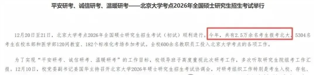 2026年共有2.8万余名考生报考浙江大学硕士研究生,报考人数位居已公布数据院校前列,延续了其常年的热门态势。2026年,共有2.5万余名考生选择报考北京大学,作为国内顶尖综合性高校,其各个学科的吸引力依旧强劲。