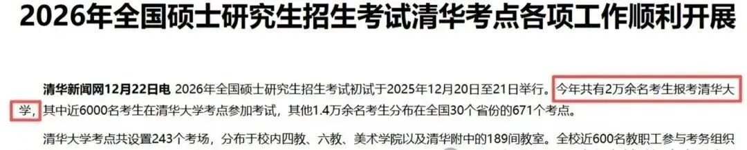 2026年共有2万余名考生报考清华大学硕士研究生,近三年该校报考人数保持相对稳定,顶尖的科研与教学平台,让其始终是学霸们的重点目标。