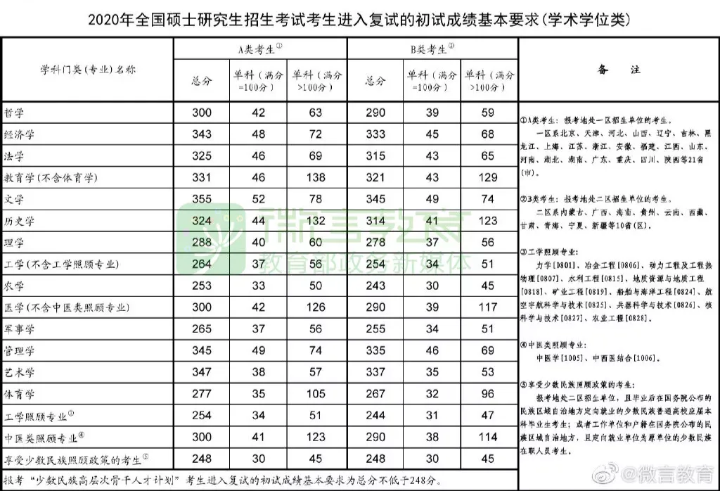 2020年考研国家线