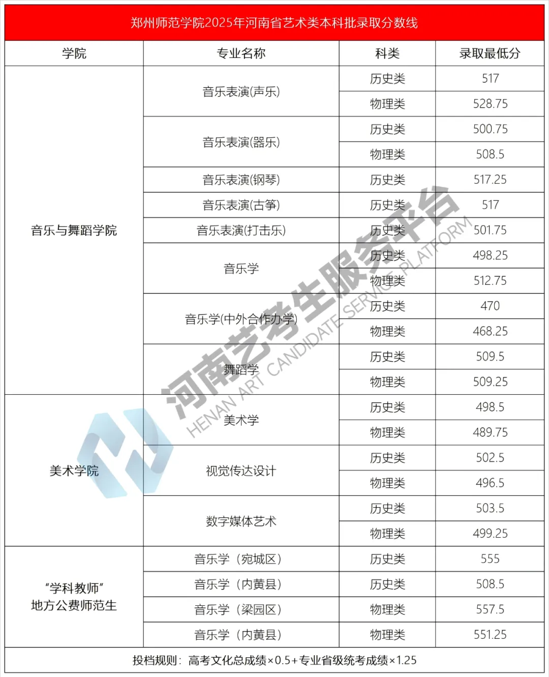 >郑州师范学院2025年河南省艺术类本科批录取分数线