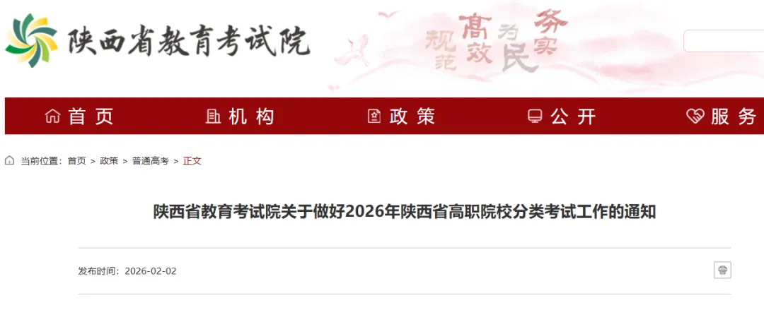 为做好2026年我省高职院校分类考试工作,根据《陕西省教育厅关于进一步加强和改进高职院校分类考试工作的通知》(陕教函〔2025〕1163号),现就有关事项通知如下。