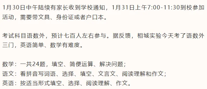 相城实验2026首批小升初考试