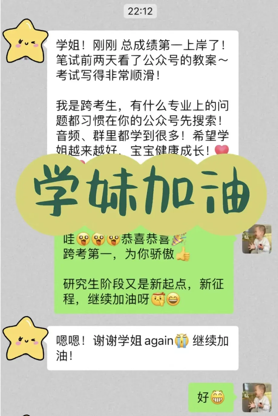 希望这一届同学也能像往届的学姐学长一样,积极主动在复试交流群里发表见解、交流讨论、共享资料。互通有无,共同进步。考研不易,我们抱团取暖,接上岸好运