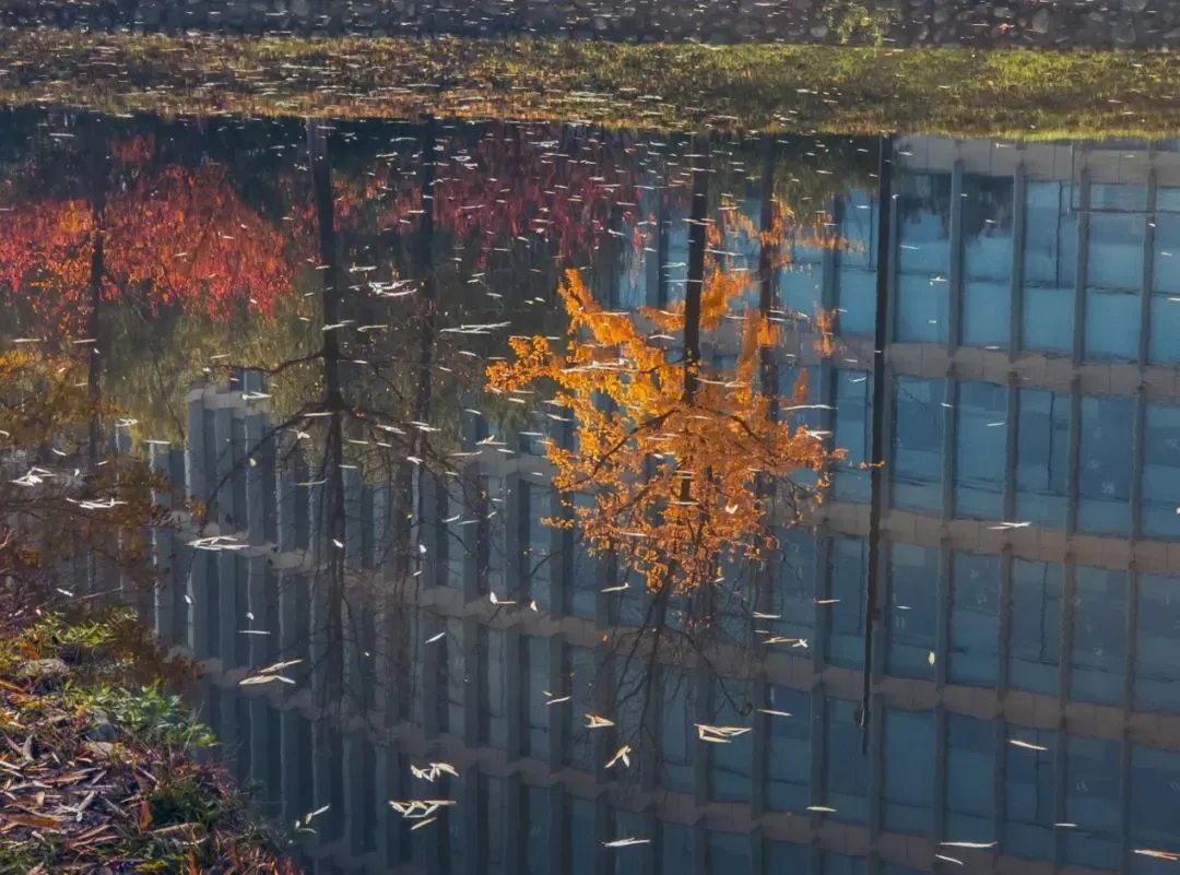 深秋已至,启翔湖畔的落叶