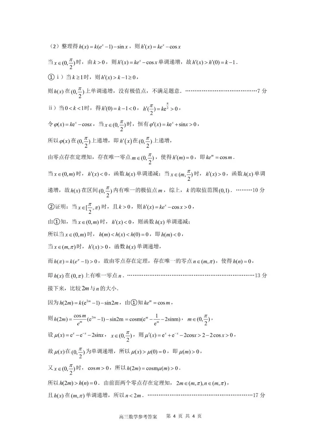 函数的零点、方程的根和两曲线的交点——2022年高考乙卷21