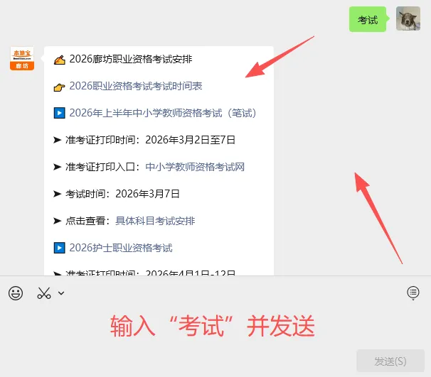 小编有话说:长按下方二维码,关注【廊坊本地宝】,在对话框内发送【考试】,即可获取2026职业资格考试时间表、廊坊近期考试相关安排。