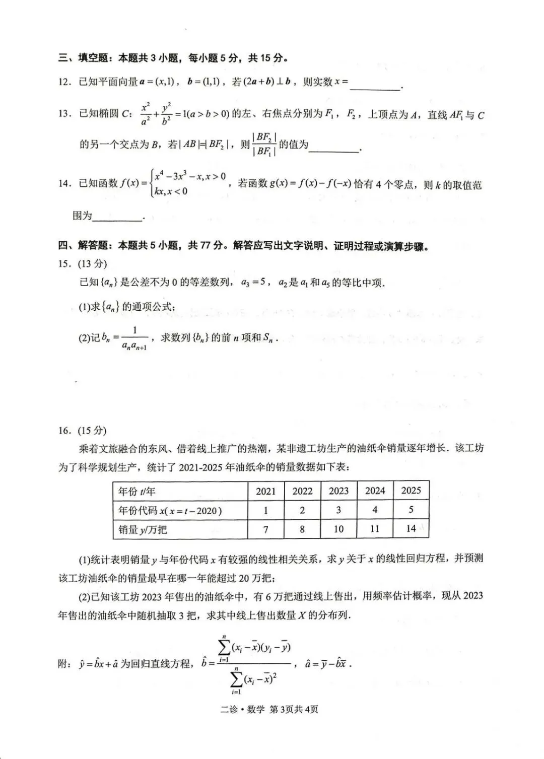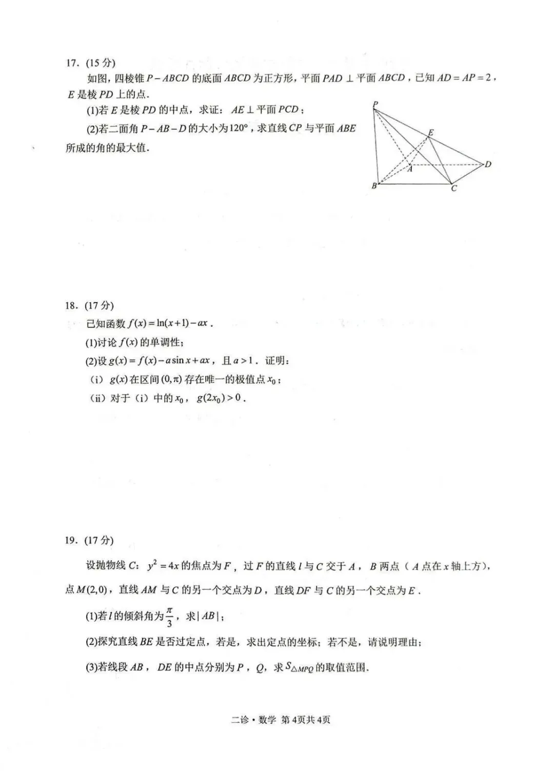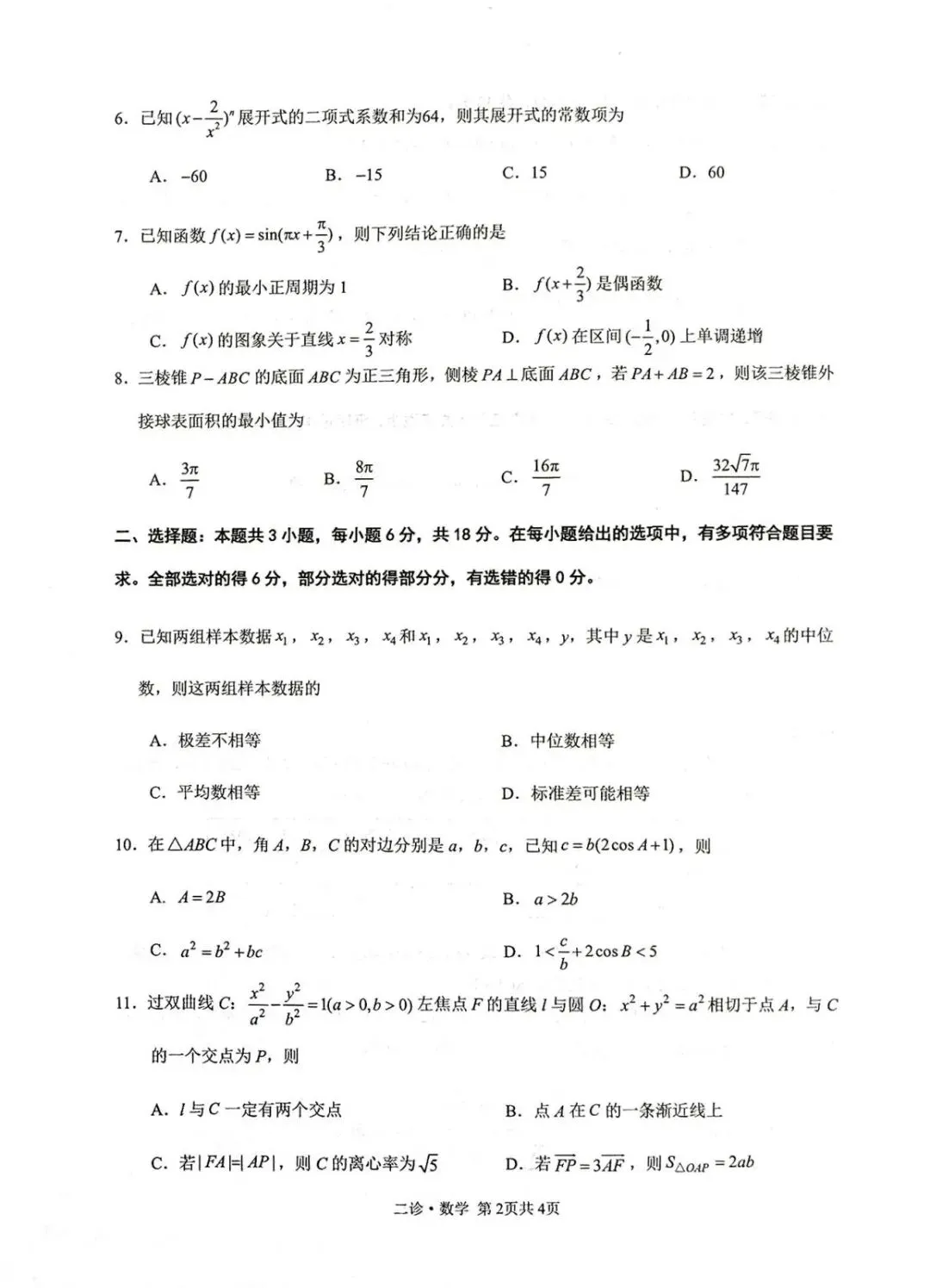 >泸州市高2023级第二次教学质量诊断性考试数学试题及详细答案