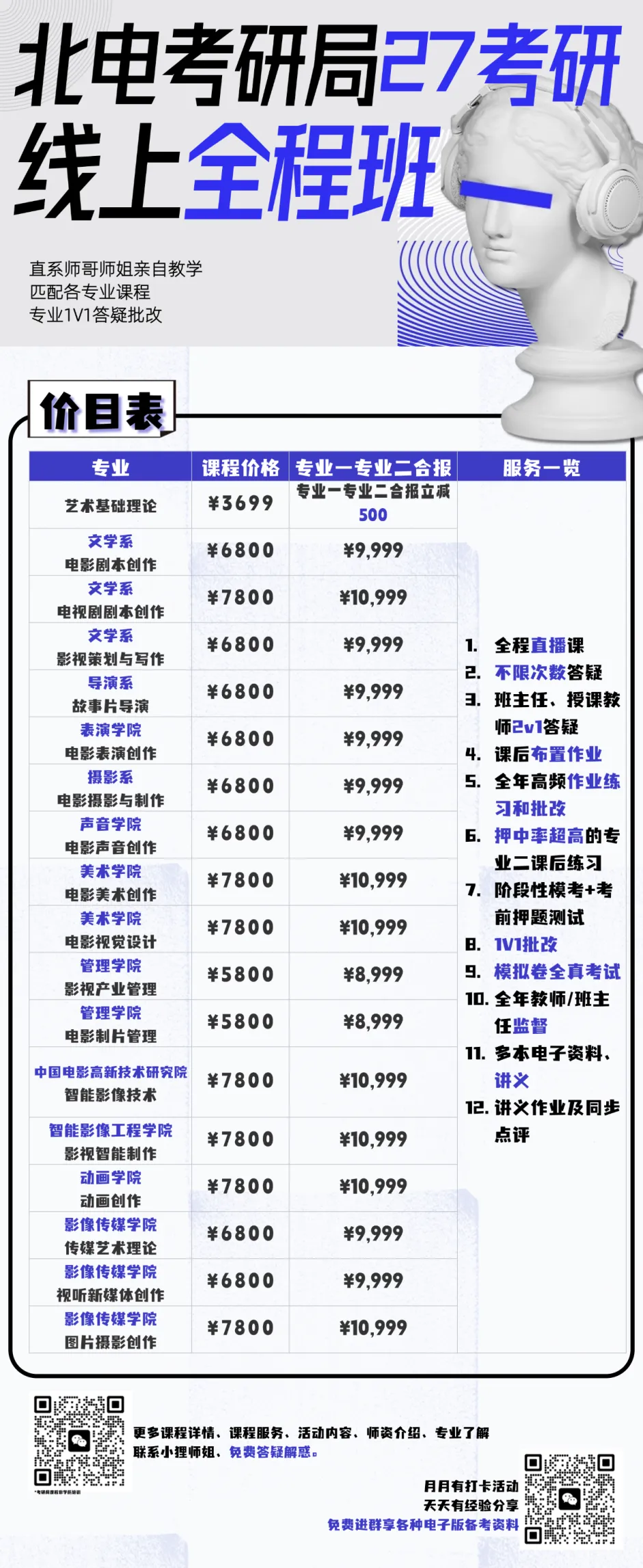 考研局在一月份也进行了多次北电专业二的直播和公开课,对自己选择什么专业还有些犹豫的小橘子,大家可以找小狸师姐VX:film2025去看看回放,再进行一下抉择。
