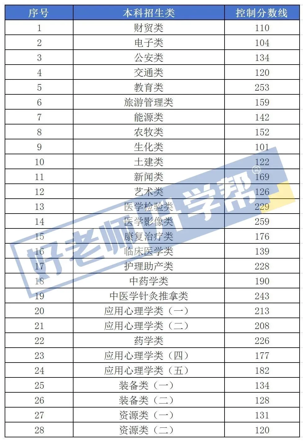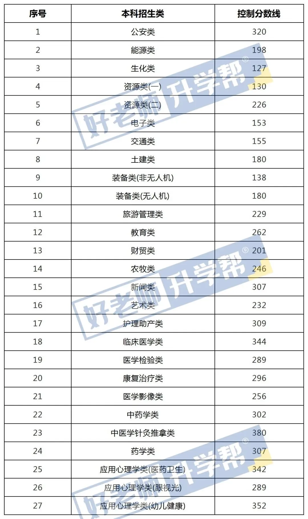 2024年专升本最低控制分数线