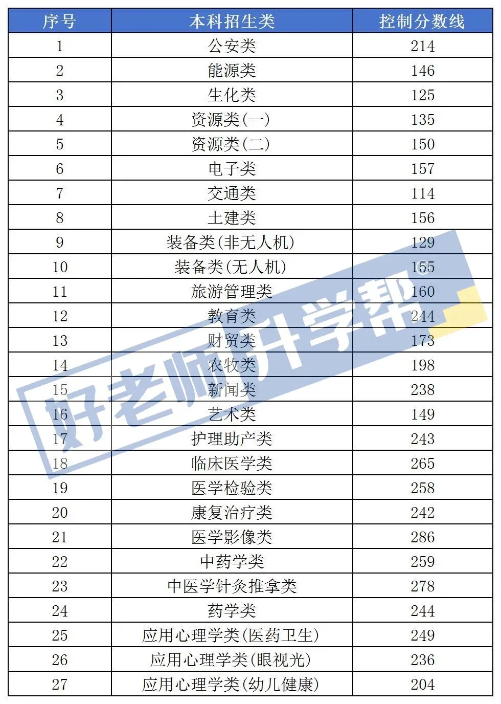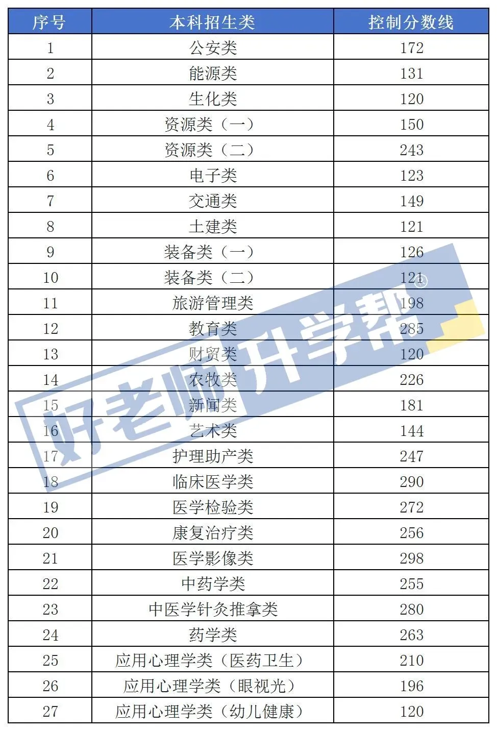 2023年专升本最低控制分数线