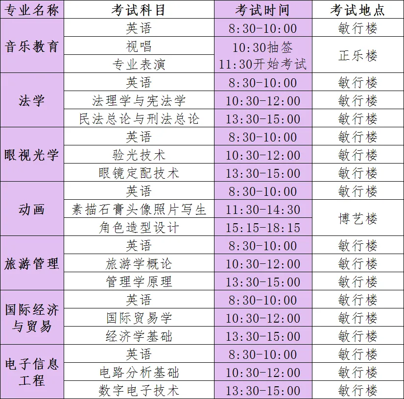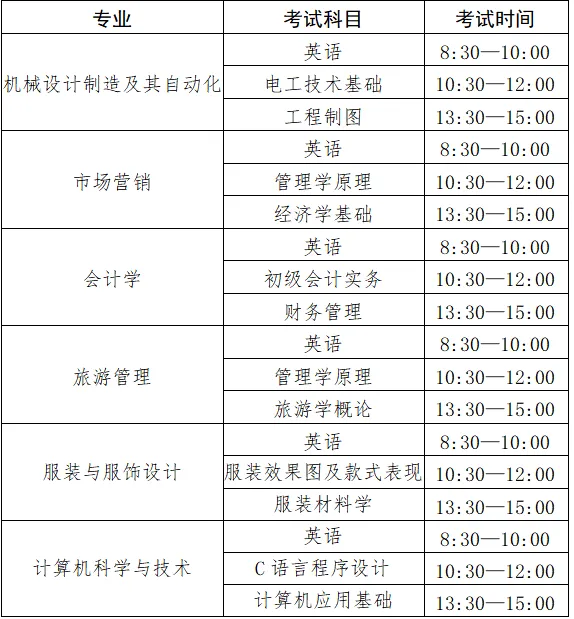 1、考试时间:2026年3月22日(星期日),考试科目3门:英语、专业科目一、专业科目二。考试时间安排为:8:30-10:00英语、10:30-12:00专业科目一、13:30-15:00专业科目二。