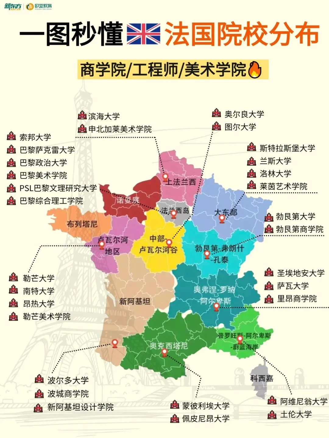 法国的高等教育体系相对完善,拥有众多世界知名的综合性大学、精英商学院及工程师学院。