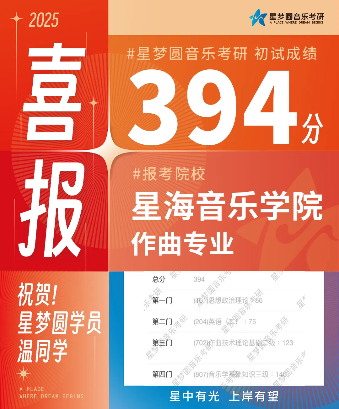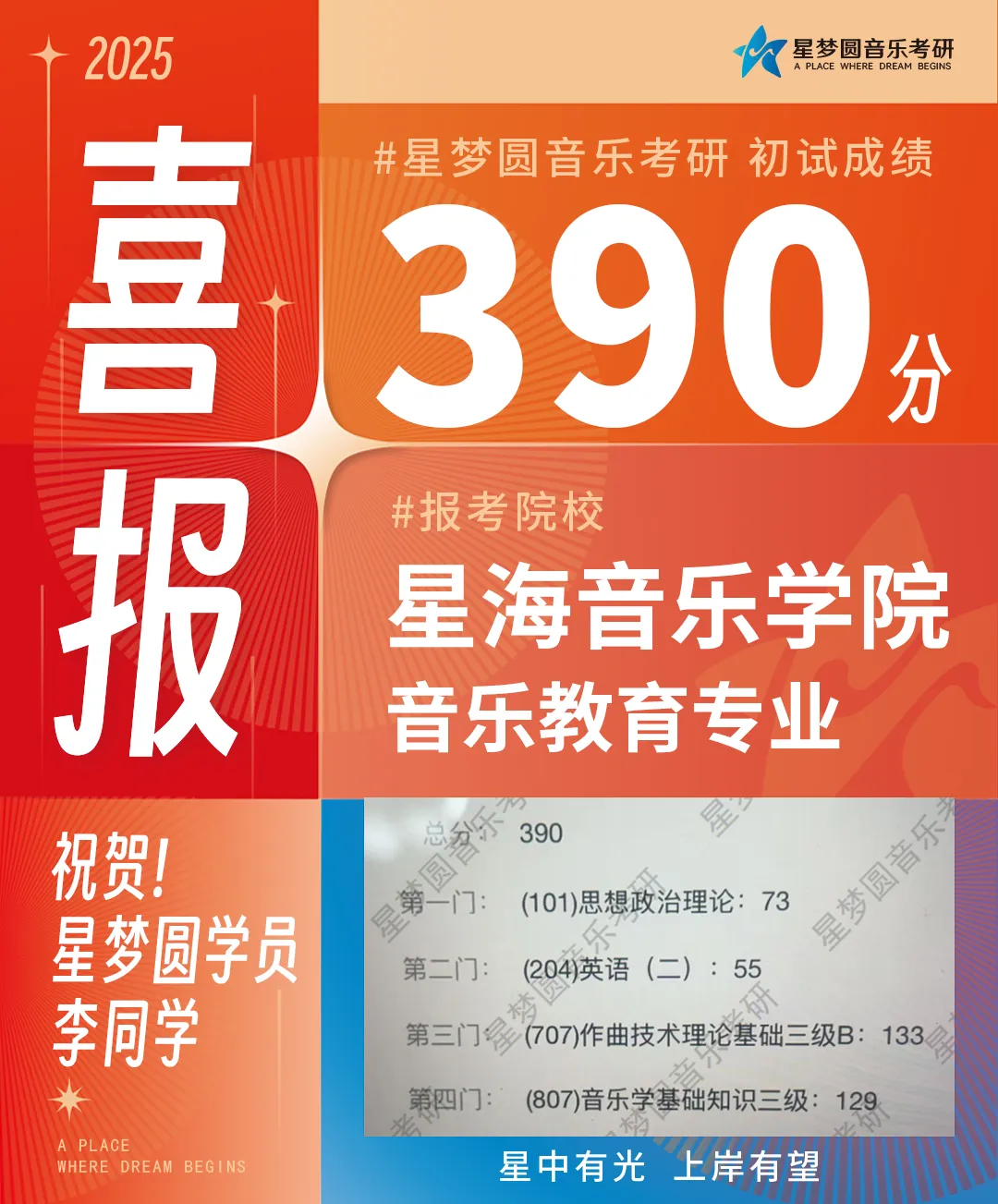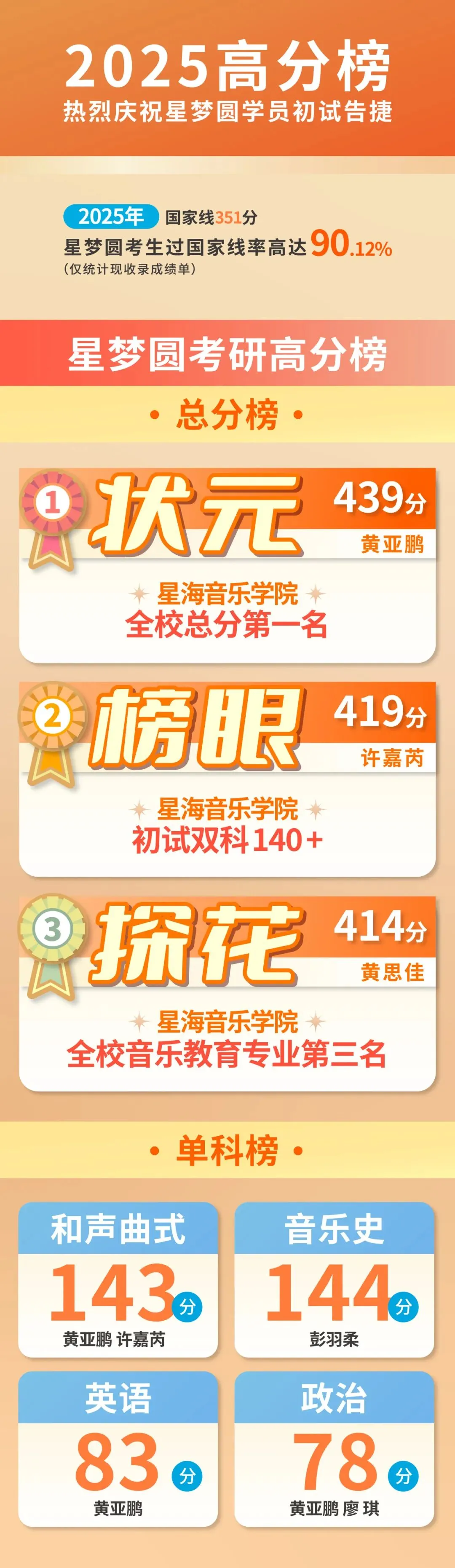 星梦圆再次斩获星海考研全校总分第一439分!上岸率高达90.12%!!