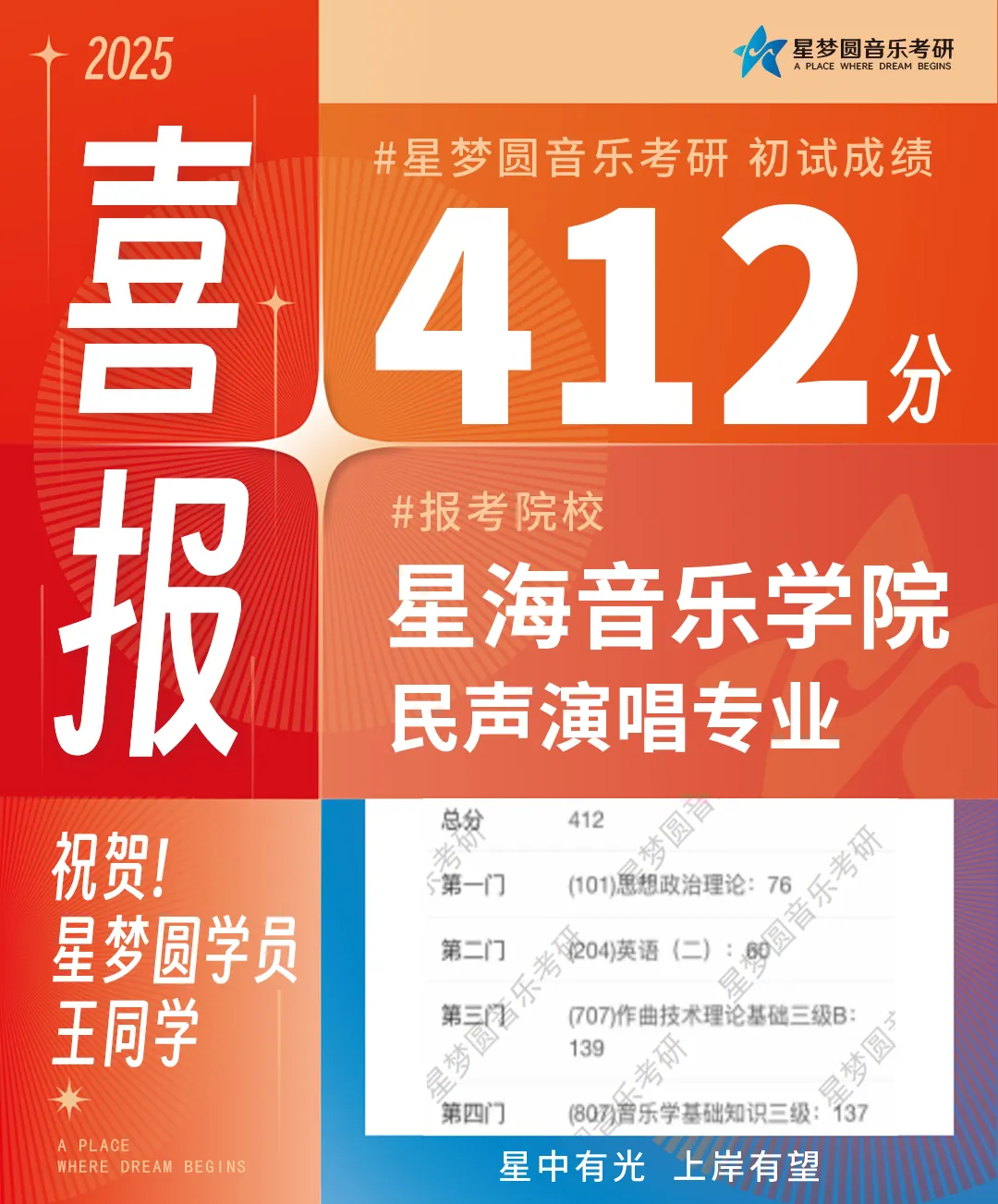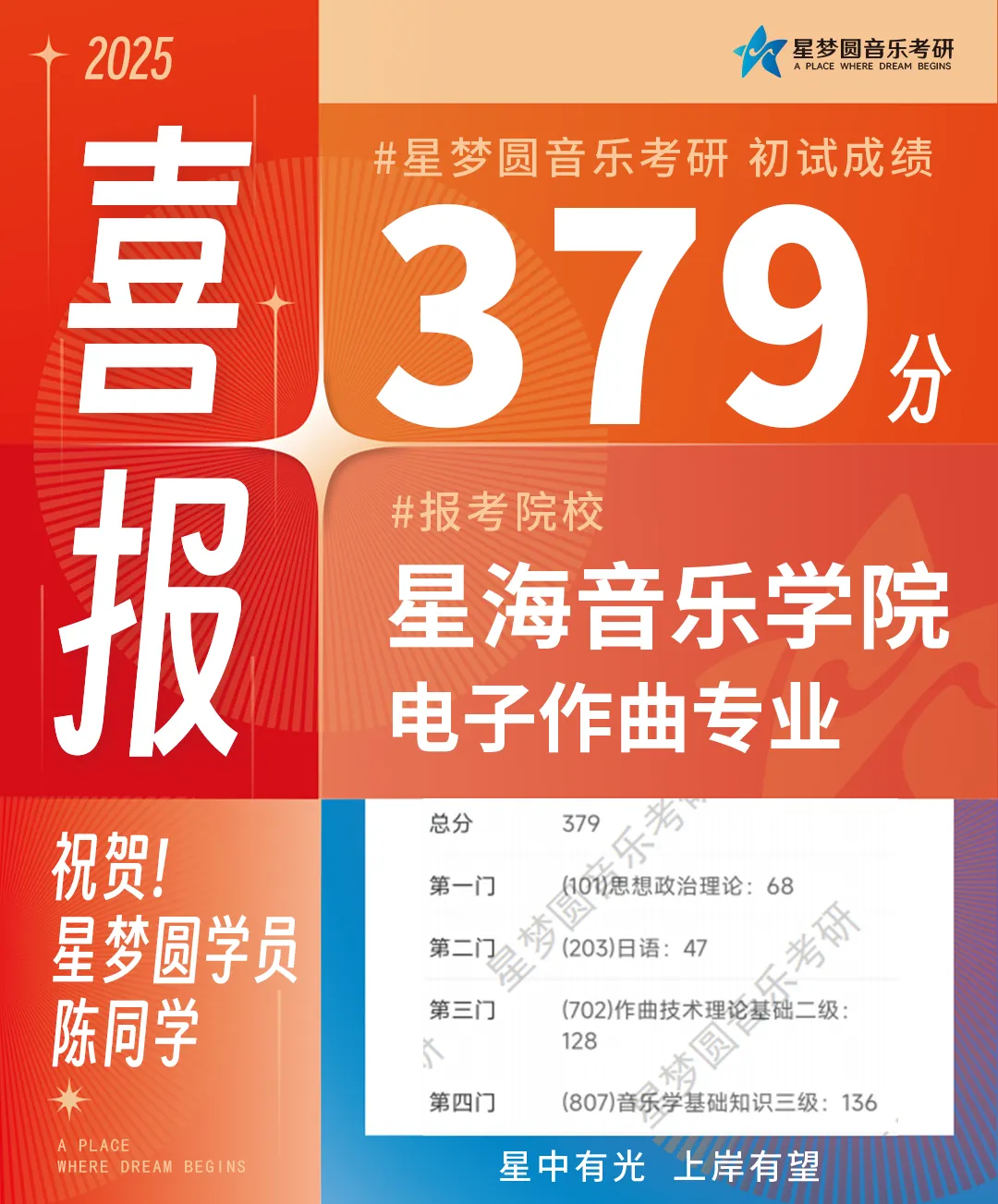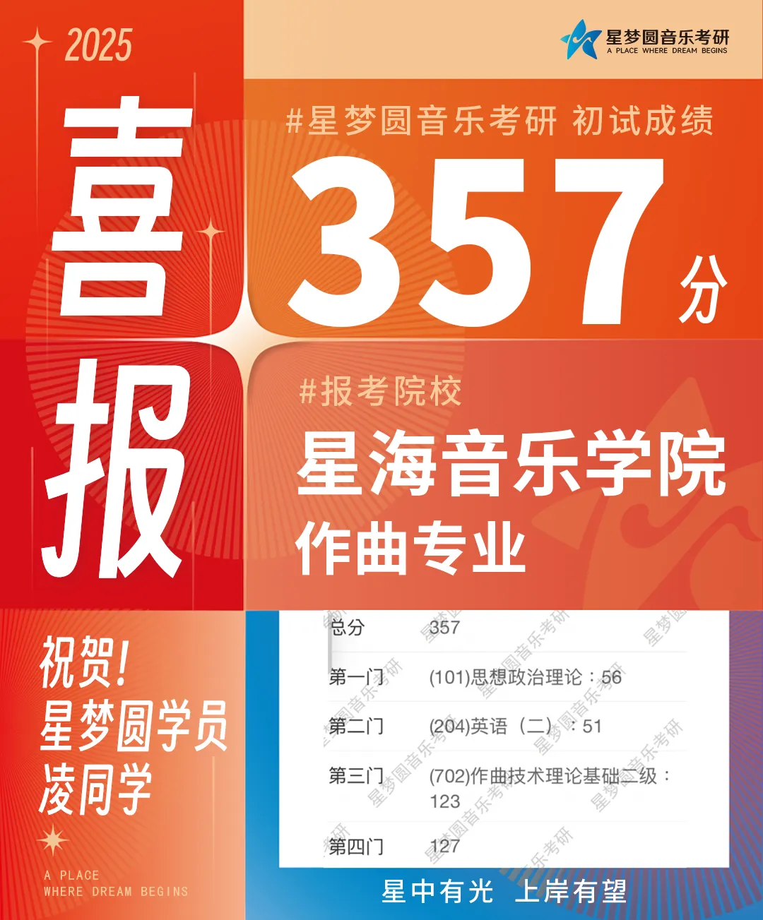 星梦圆再次斩获星海考研全校总分第一439分!上岸率高达90.12%!!