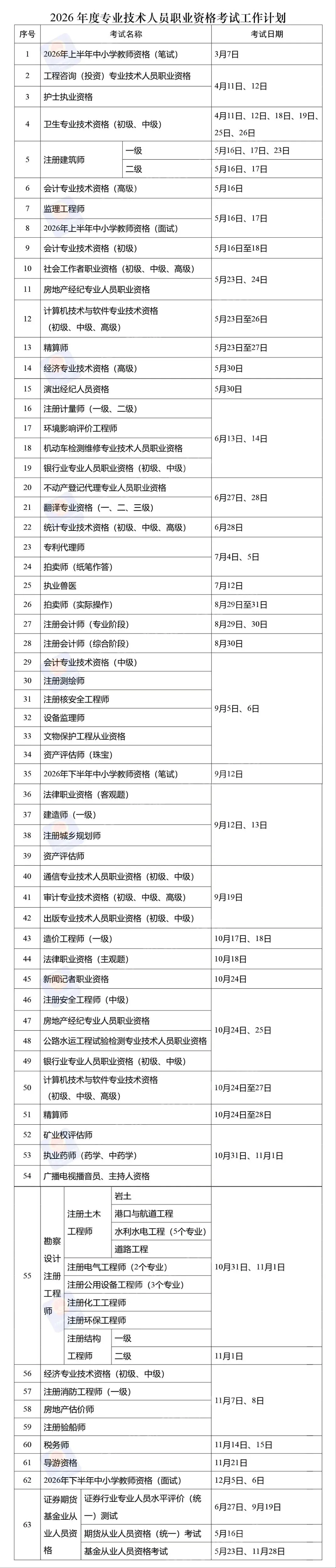 >2026这些职业资格考试时间表定了