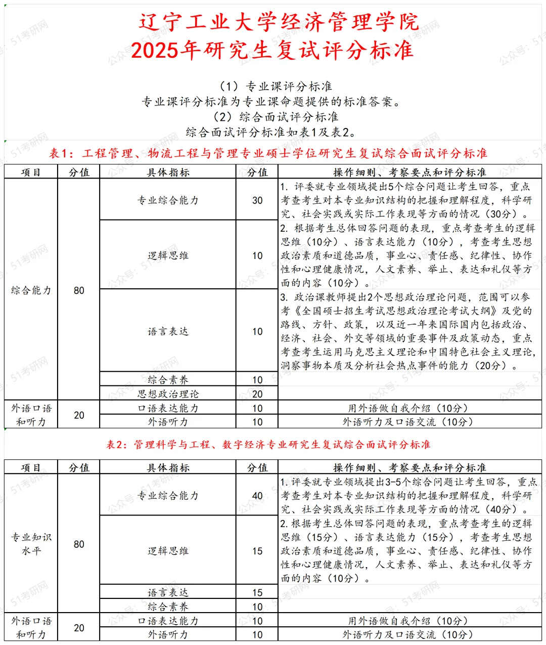 辽宁工业大学经济管理学院2025年研究生复试评分标准