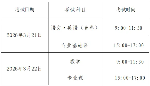 1,中职类专业文化课考试科目及时间为: