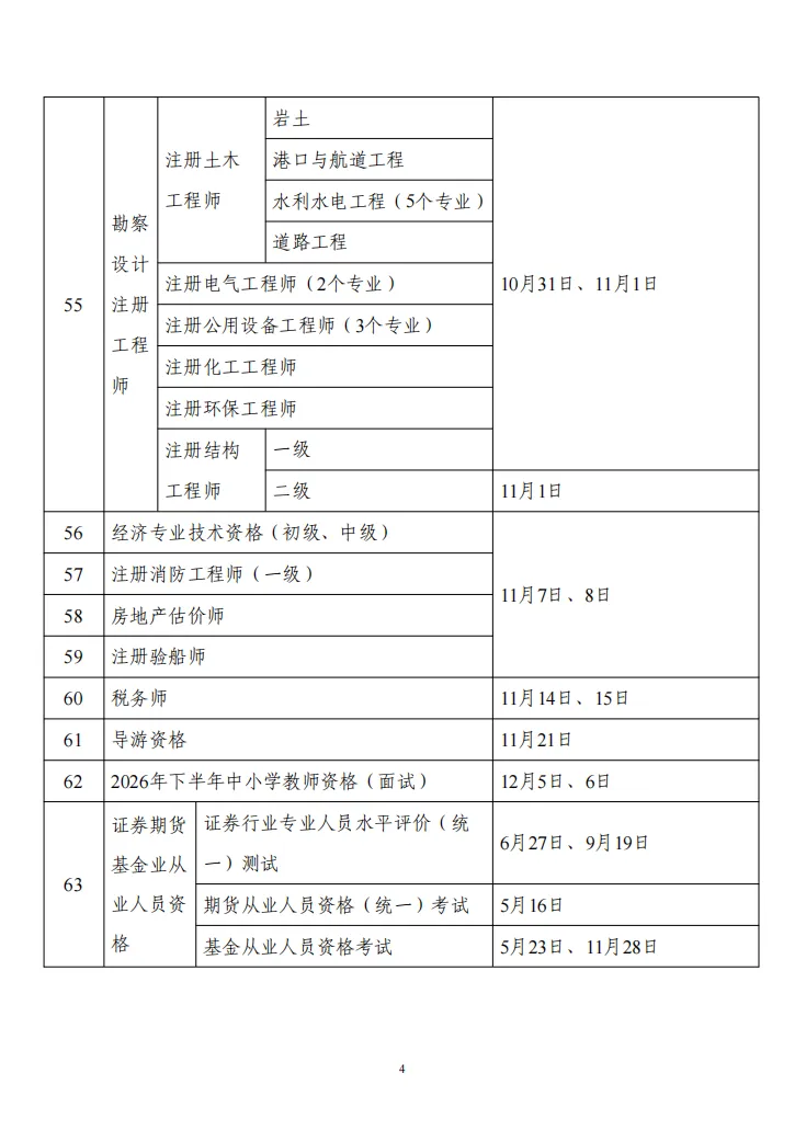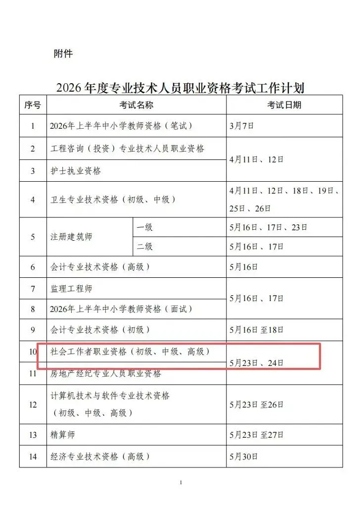 为切实做好专业技术人员职业资格考试规划与管理工作,方便广大专业技术人员参加职业资格考试,经征求有关部门同意,现就2026年度专业技术人员职业资格考试工作计划及有关事项通知如下: