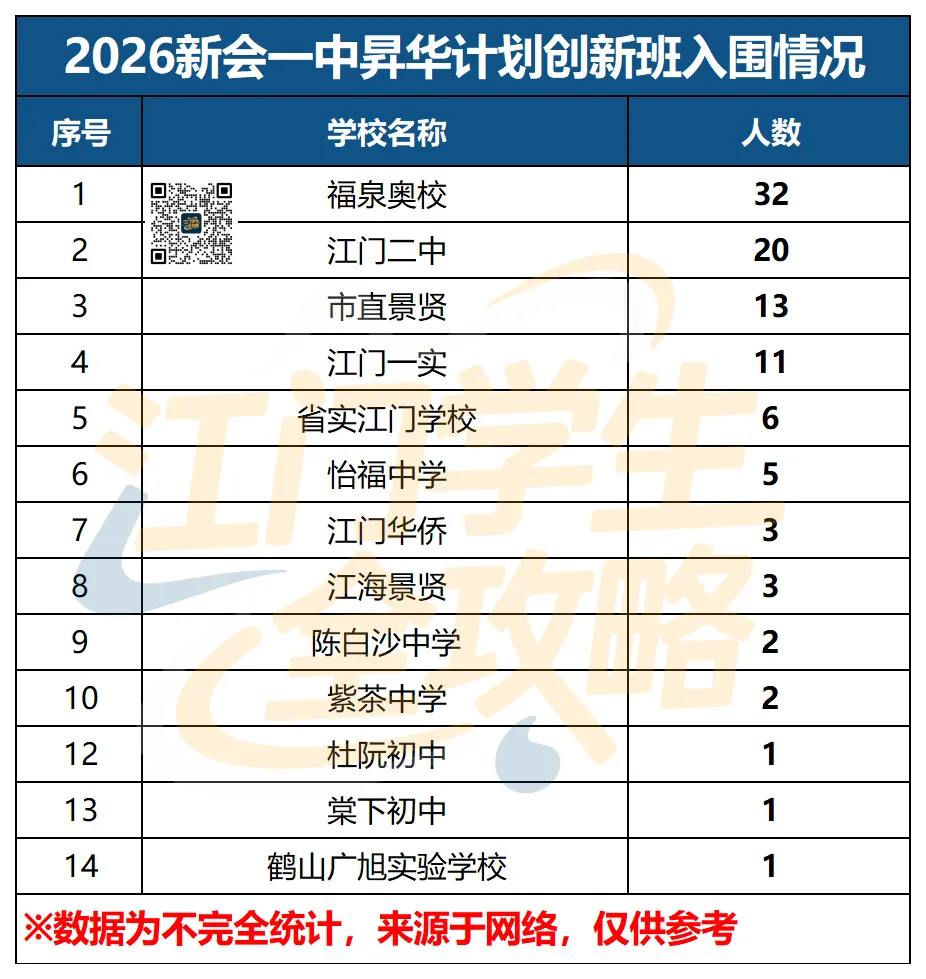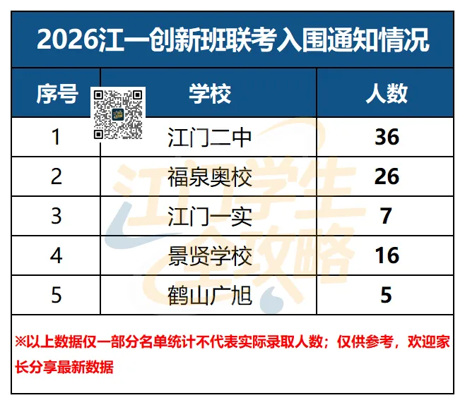 而台山一中也在近期公布了相关创新班各校入围情况,而台山一中也仅面向台山户籍以及台山学籍的学子开展选拔,优秀生源的吸纳就相对平稳。