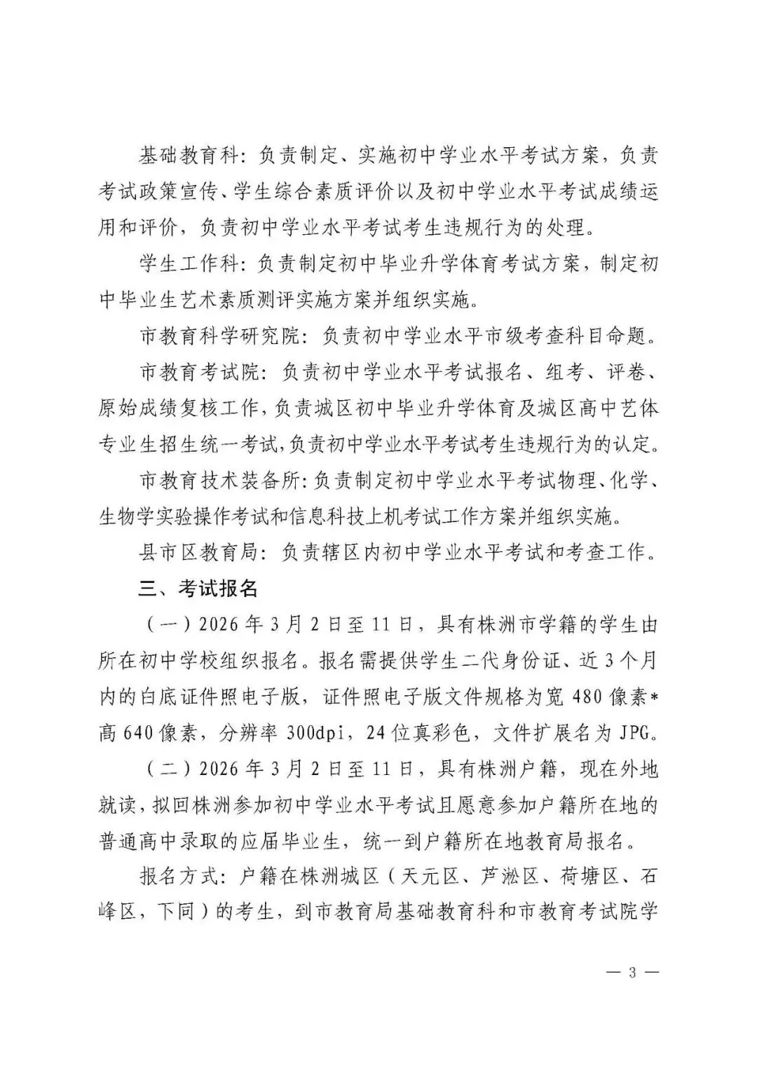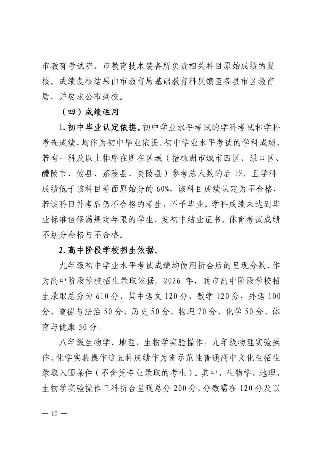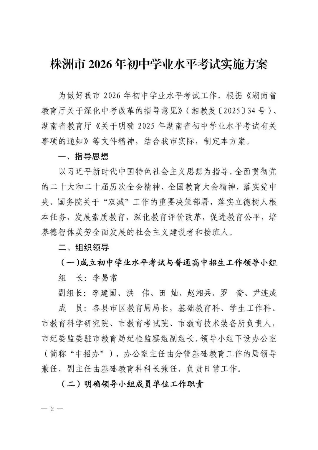 >中考政策丨株洲市2026年初中学业水平考试实施方案