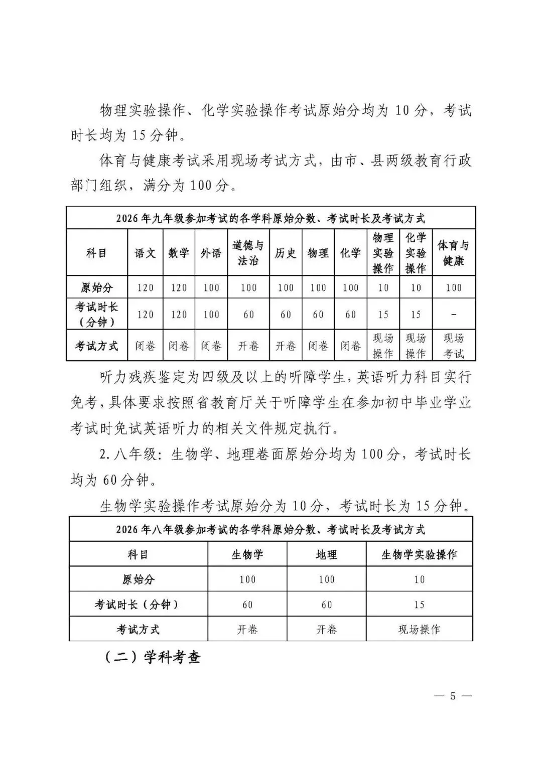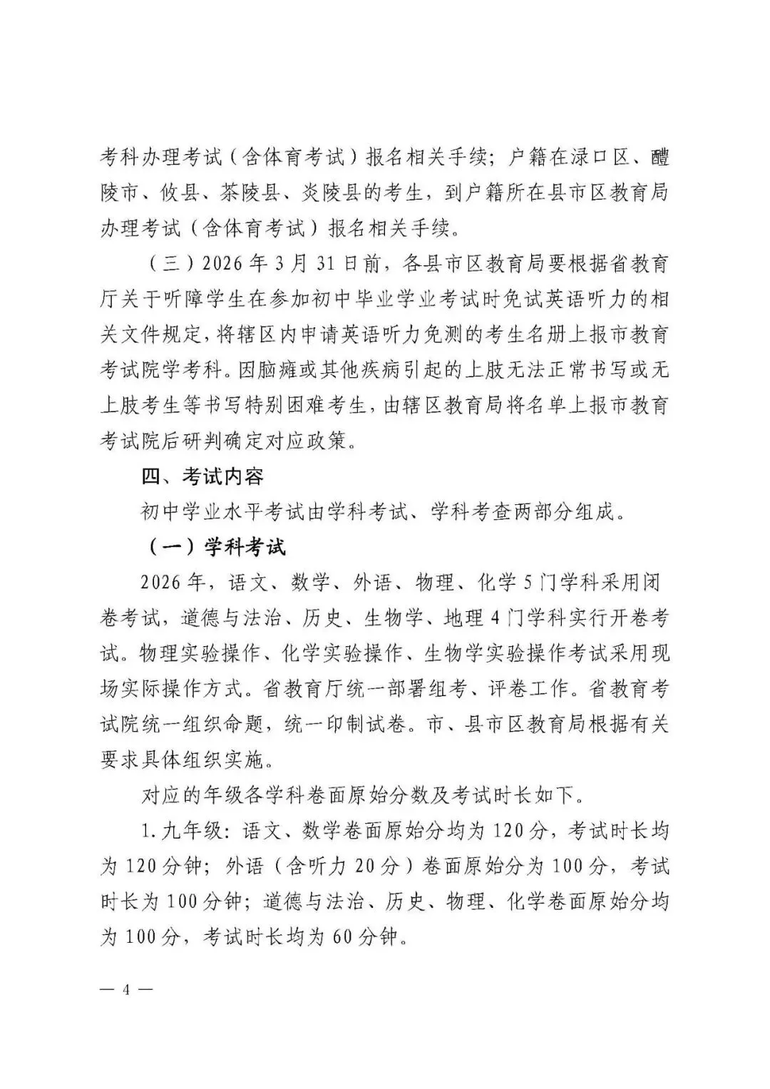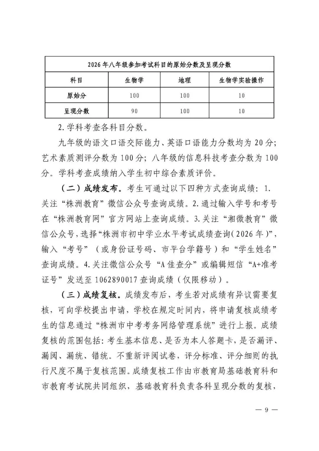 中考政策丨株洲市2026年初中学业水平考试实施方案