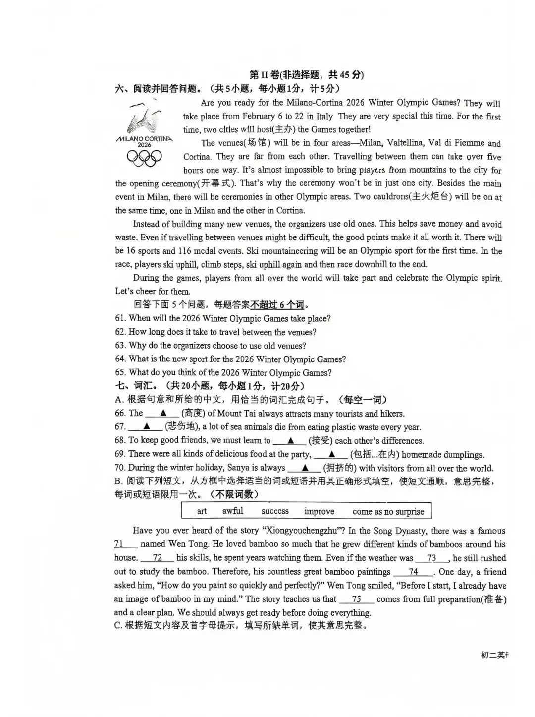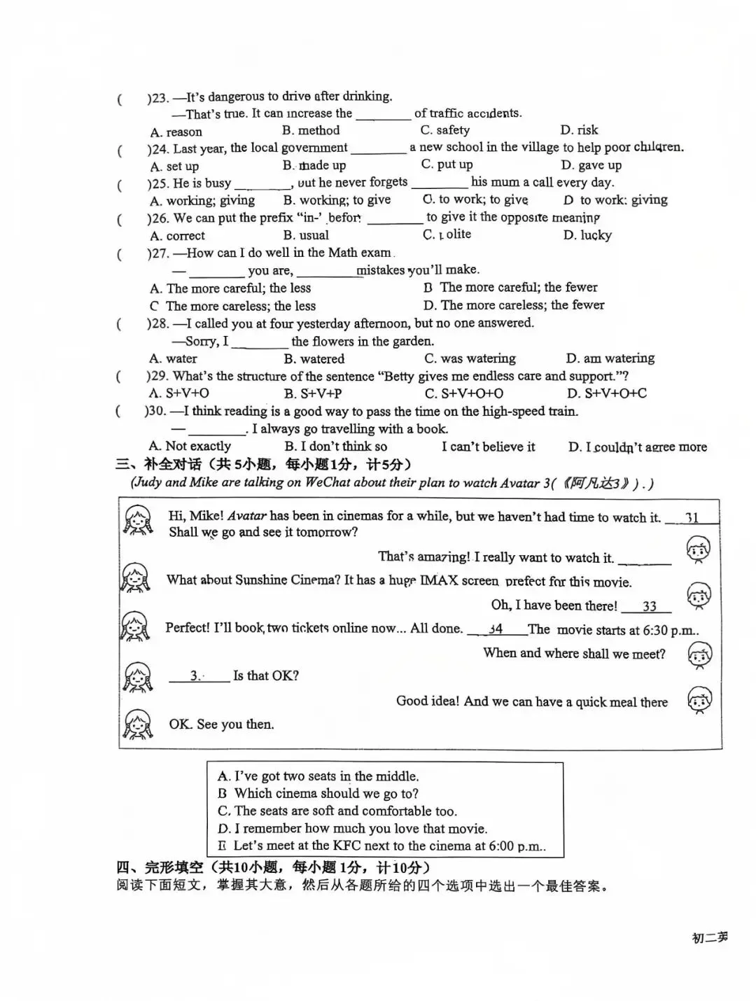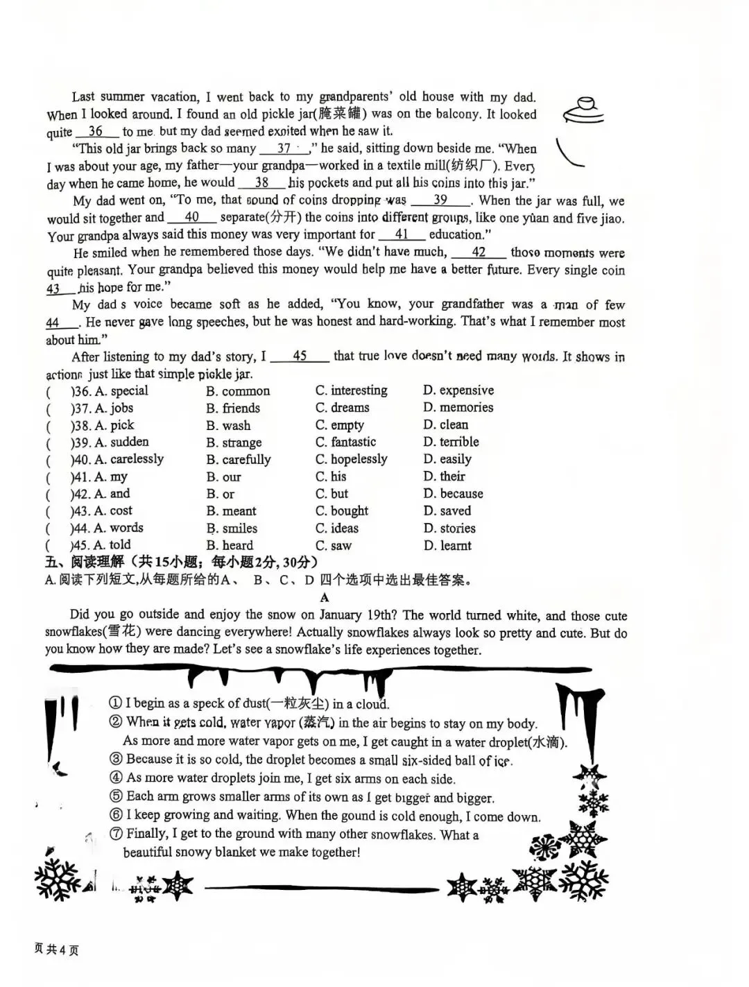 B. 阅读下列短文,从方框中选择适当的词或短语并用其正确形式填空