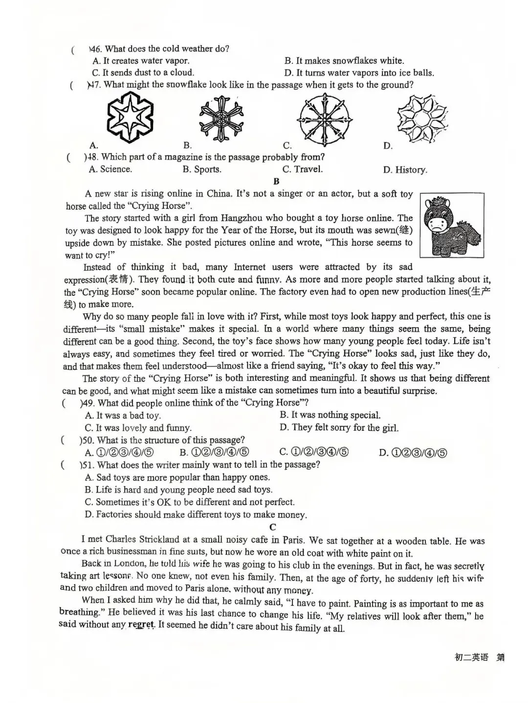 65. Special/Unusual/Wonderful.(答案不唯一,合理即可)