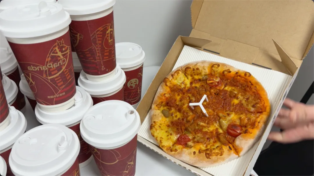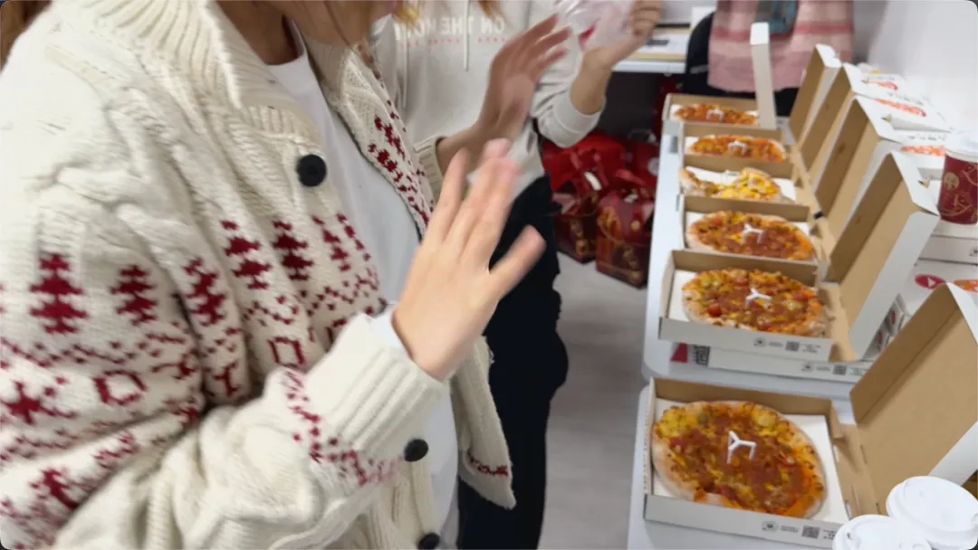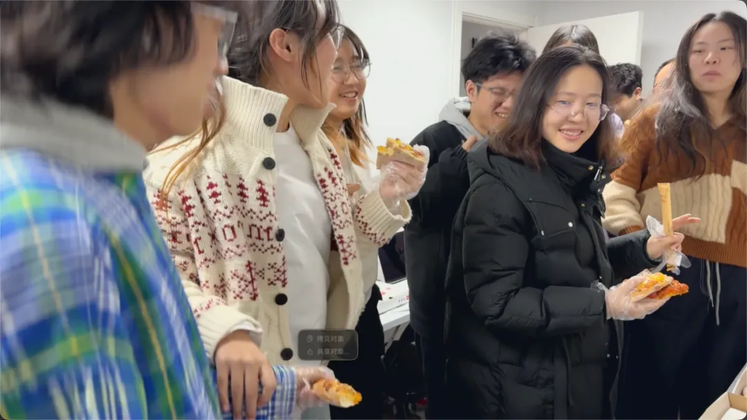 奶茶与披萨的突然来袭,让大家吃到爽、笑到畅;