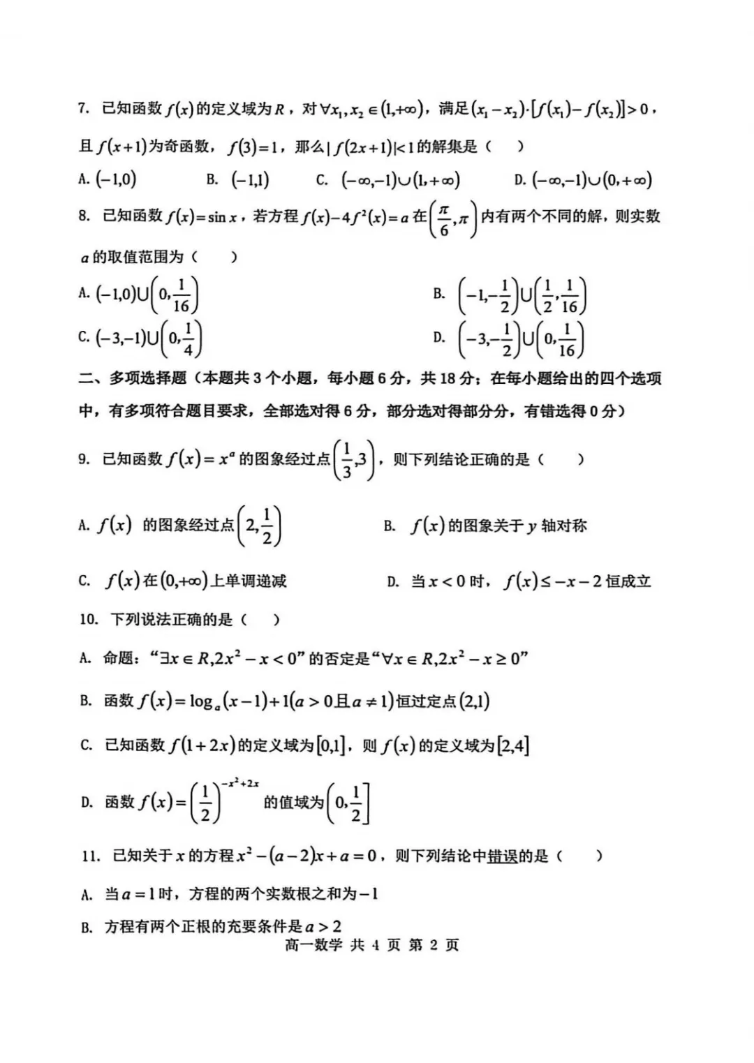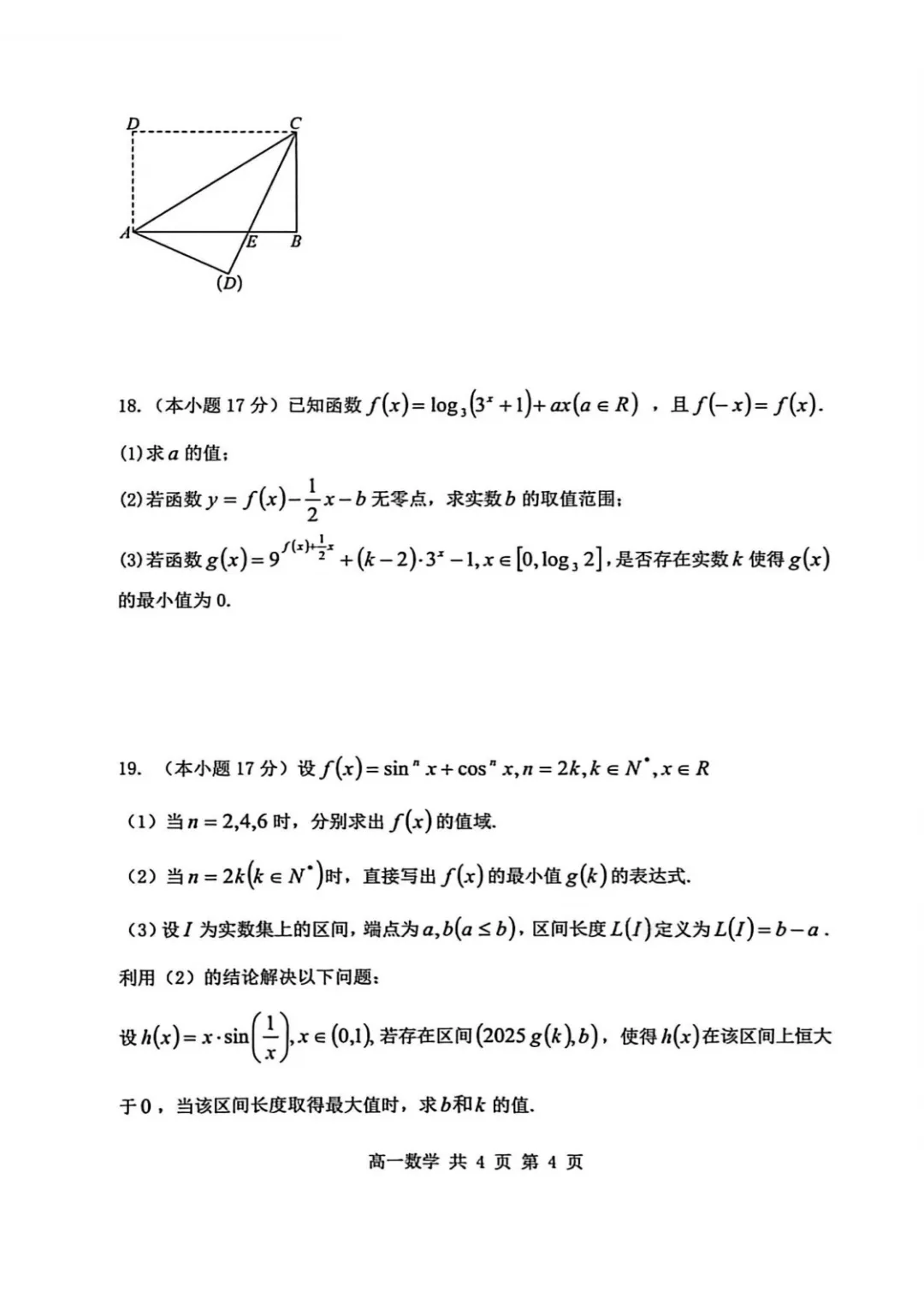 >2028届重庆市主城七校联盟高一期末考试数学试卷及答案
