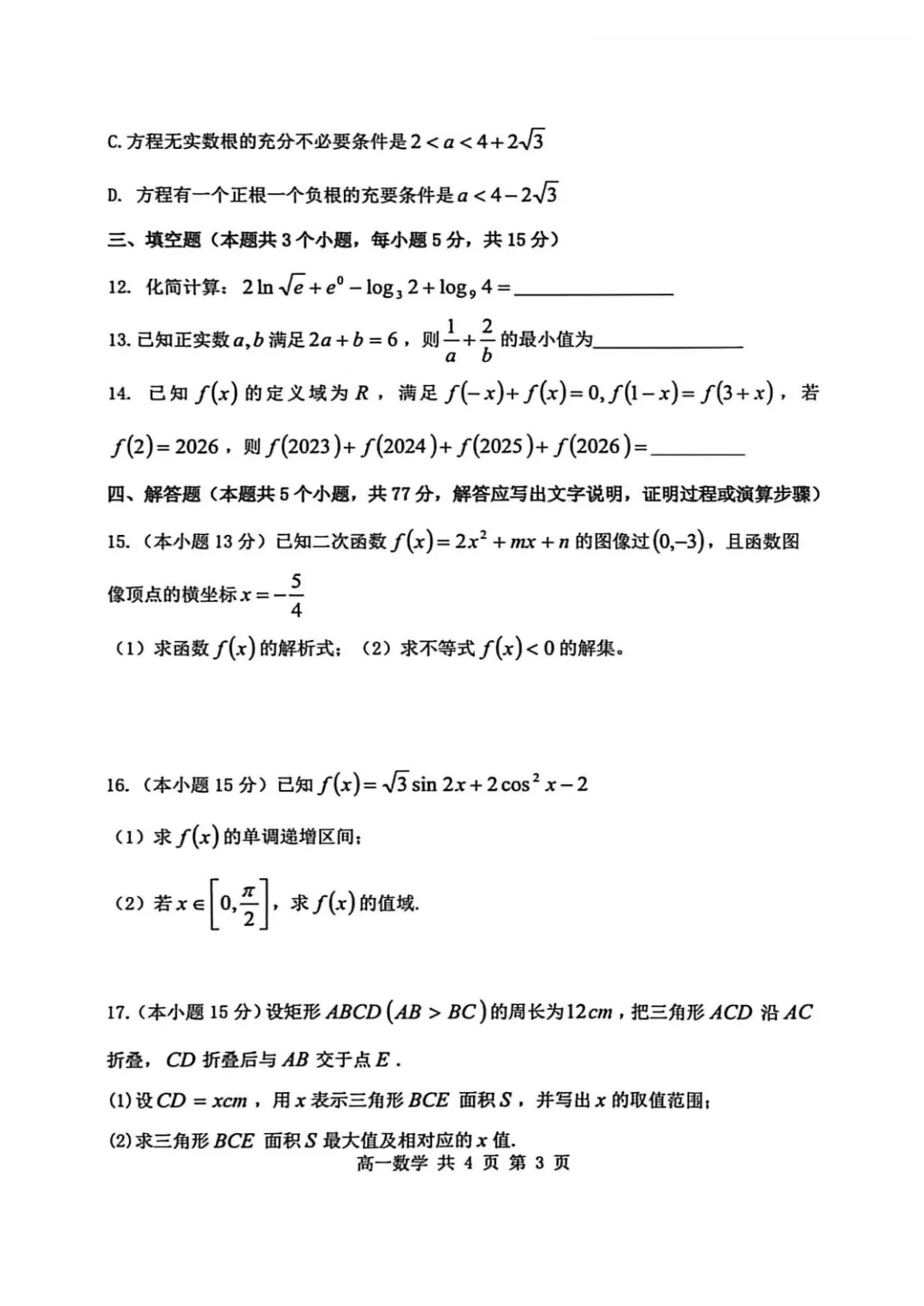 【苏州零模】2026届高三2月期末考试《数学,英语,历史,物理,地理、化学、政治、生物、语文》试卷+答案