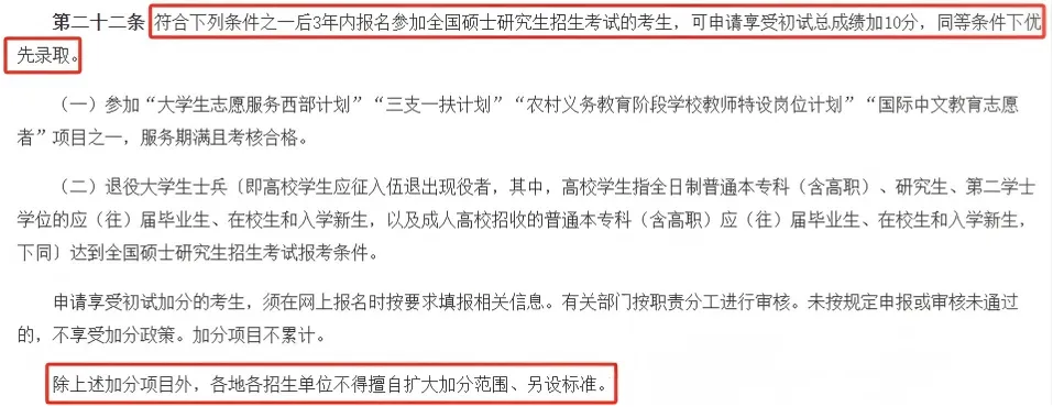 教育部在《2026年全国硕士研究生招生工作管理规定》中,“参与‘选聘高校毕业生到村任职’项目的考生,在初试阶段可享受15分的加分优惠”这一加分政策被取消。