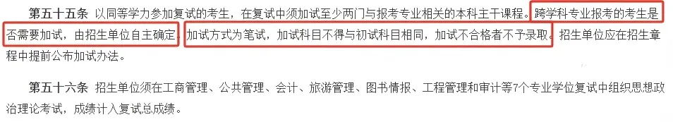 《26年新规》中指出,对于跨学科专业报考的考生,招生单位可进行笔试加试,加试科目不得与初试科目相同,加试不合格者不予录取。