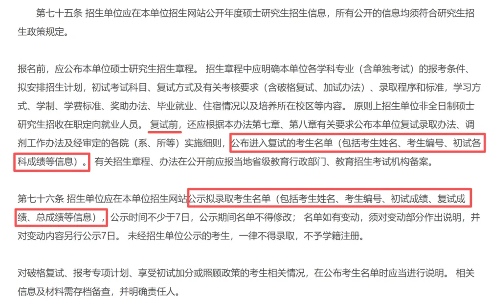 为了提高招生工作的透明度,新的复试规定要求各高校在复试前后及时公布考生复试成绩及相关信息。这一举措不仅增强了考生对复试过程的信任感,也为社会监督提供了依据。
