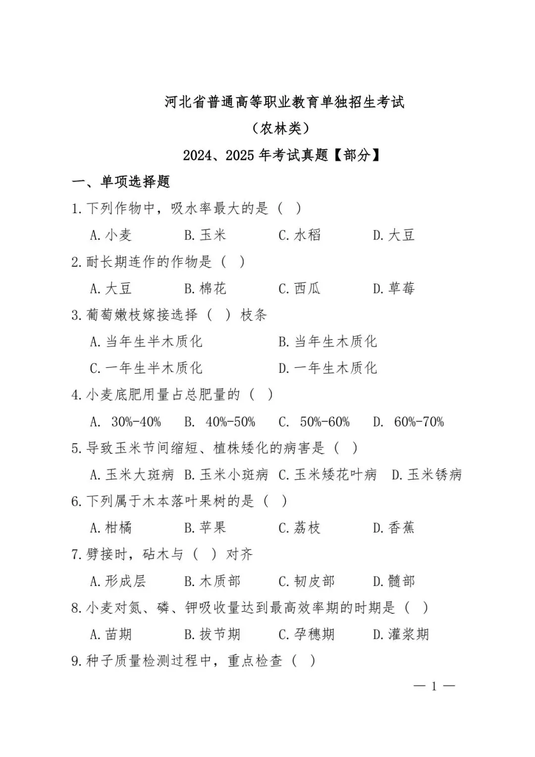 >河北省普通高等职业教育单独招生考试(部分真题)发布