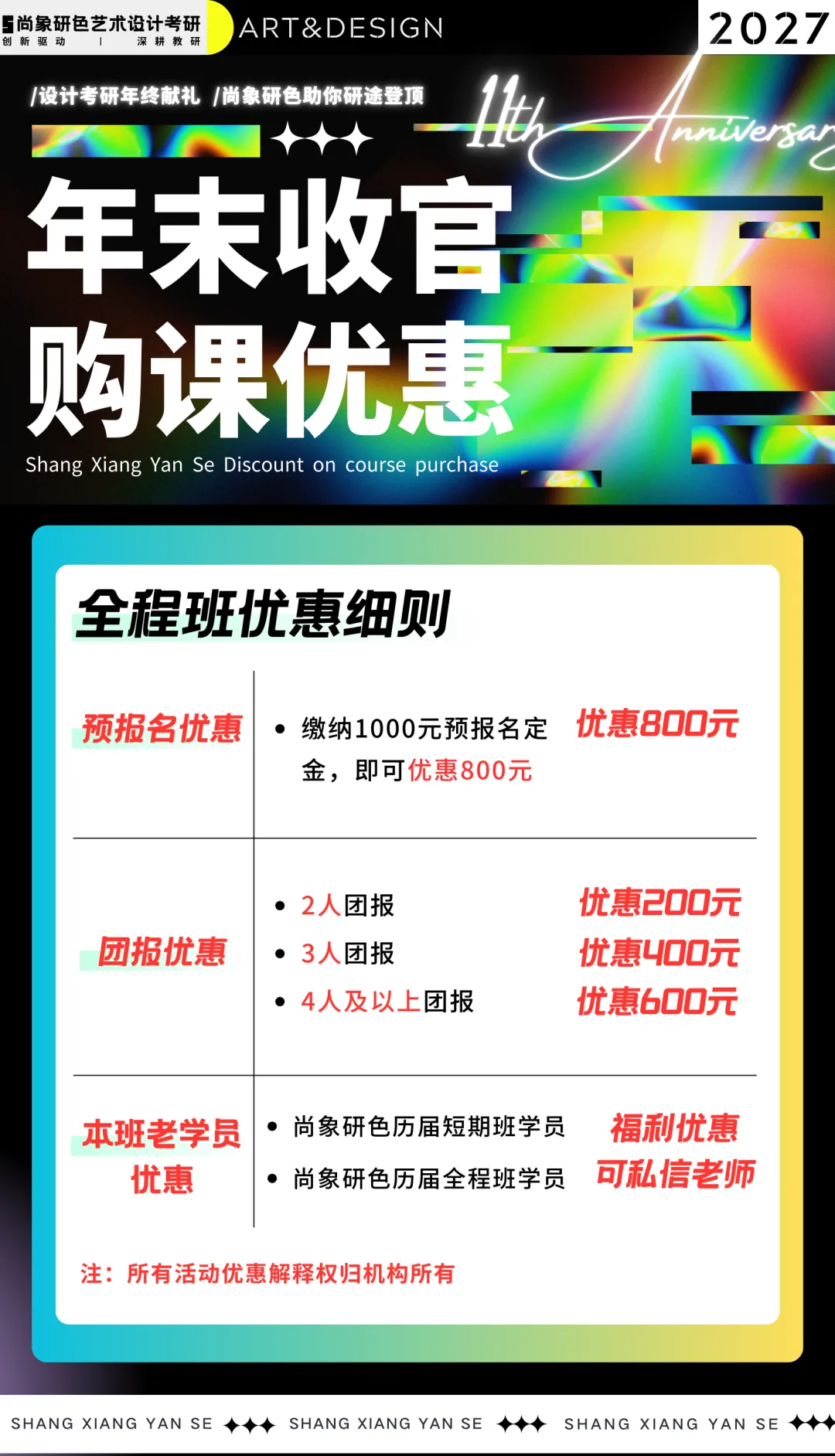 值此年末,以十一年教学积淀为底气,以诚意换信任,为各位设计考研学子奉上年终专属献礼!