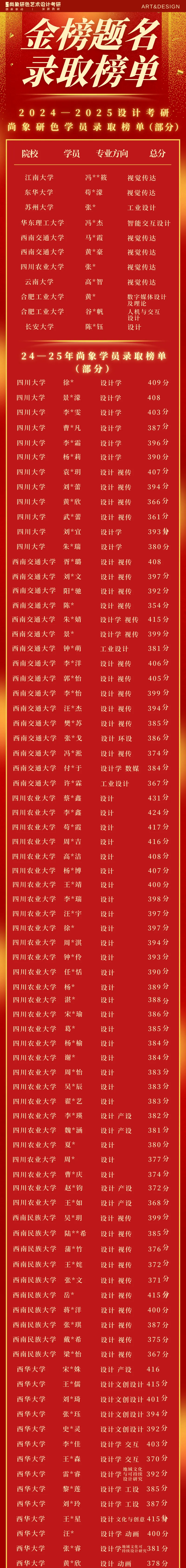 【尚象研色2024、2025设计考研上岸部分名单】