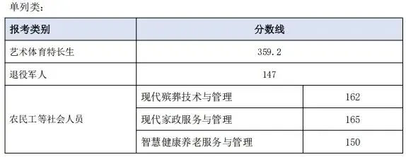 中职考生和往届普通高中考生及同等学力考生(第二类考生) | 328 | |