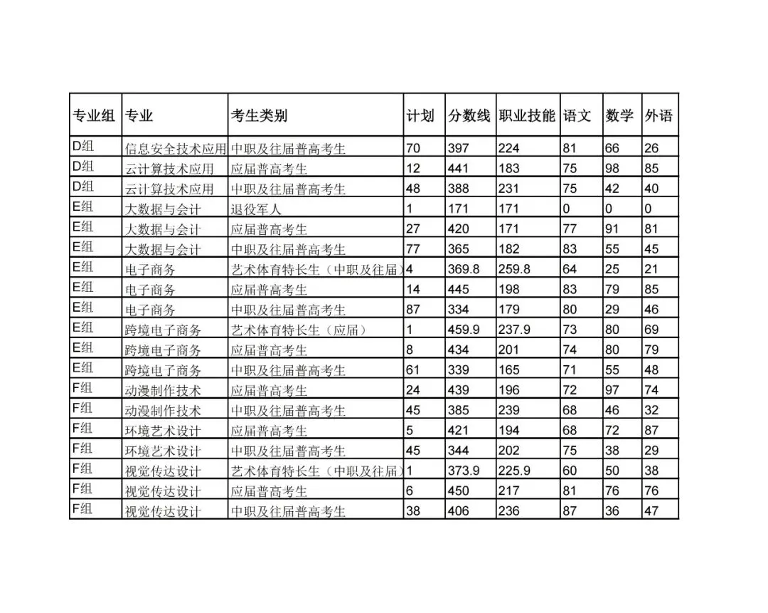中职考生和往届普通高中考生及同等学力考生(第二类考生) | 359 | |