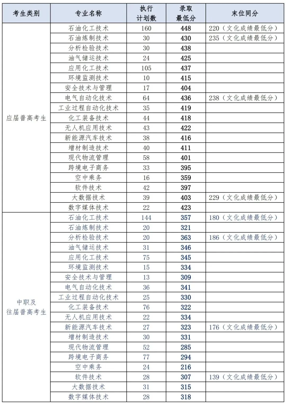 报考专业 | 考生类别 | 录取分数线 | 同分情况 |