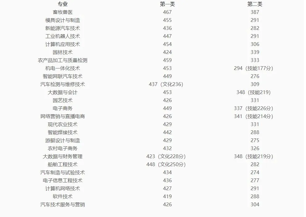 供用电技术 | 应届普通高中毕业考生(第一类考生) | 448.5 | |