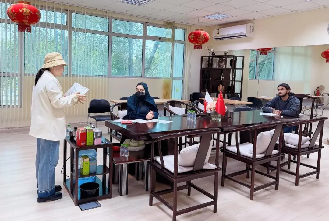 下午进行的HSK一级考试主要面向初级汉语学习者。开考前,监考教师马丽华和门禄禄再次向考生强调考试纪律和答题规范,帮助学生缓解紧张情绪,顺利进入考试状态。