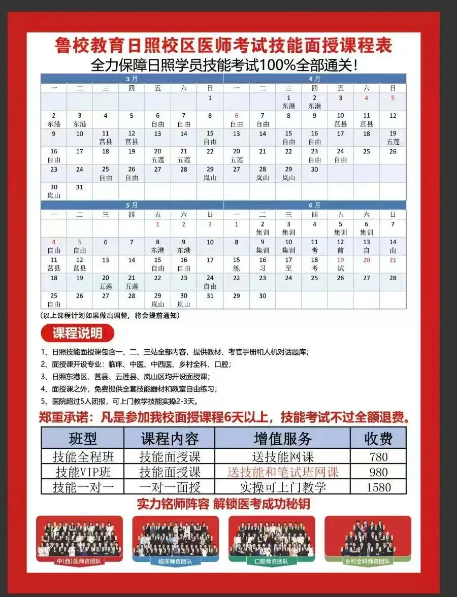 枣庄考点将于2026年3月2日—3月6日(上午9:00—11:30,下午14:00—17:00)进行现场审核,所有参加2026年医师资格考试报名的考生,必须本人携带报名的所有资料(原件),到枣庄市卫生健康服务中心(薛城区光明大道2036号市公路和地方铁路事业发展中心院内西侧-辅楼1楼)参加现场审核,具体时间安排如下:
