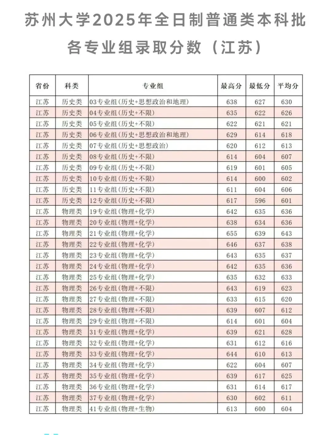 点击查看苏州大学2025年全日制普通本科招生专业录取分数(江苏)