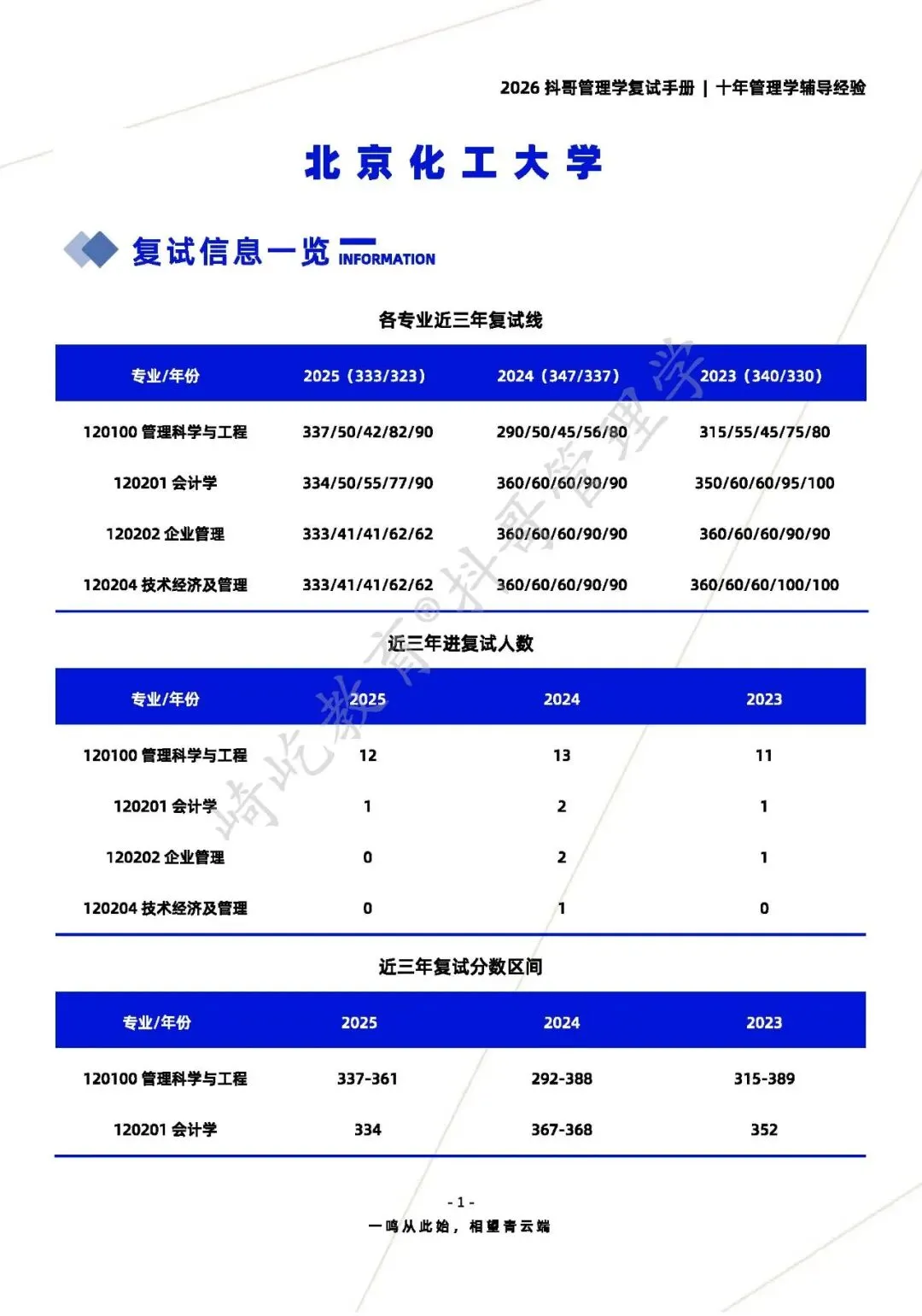 【26复试】北京化工大学850管理学考研|复试数据信息|复试科目信息|经验合集|复试课程