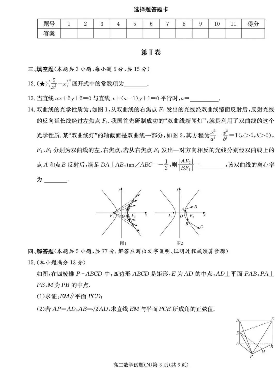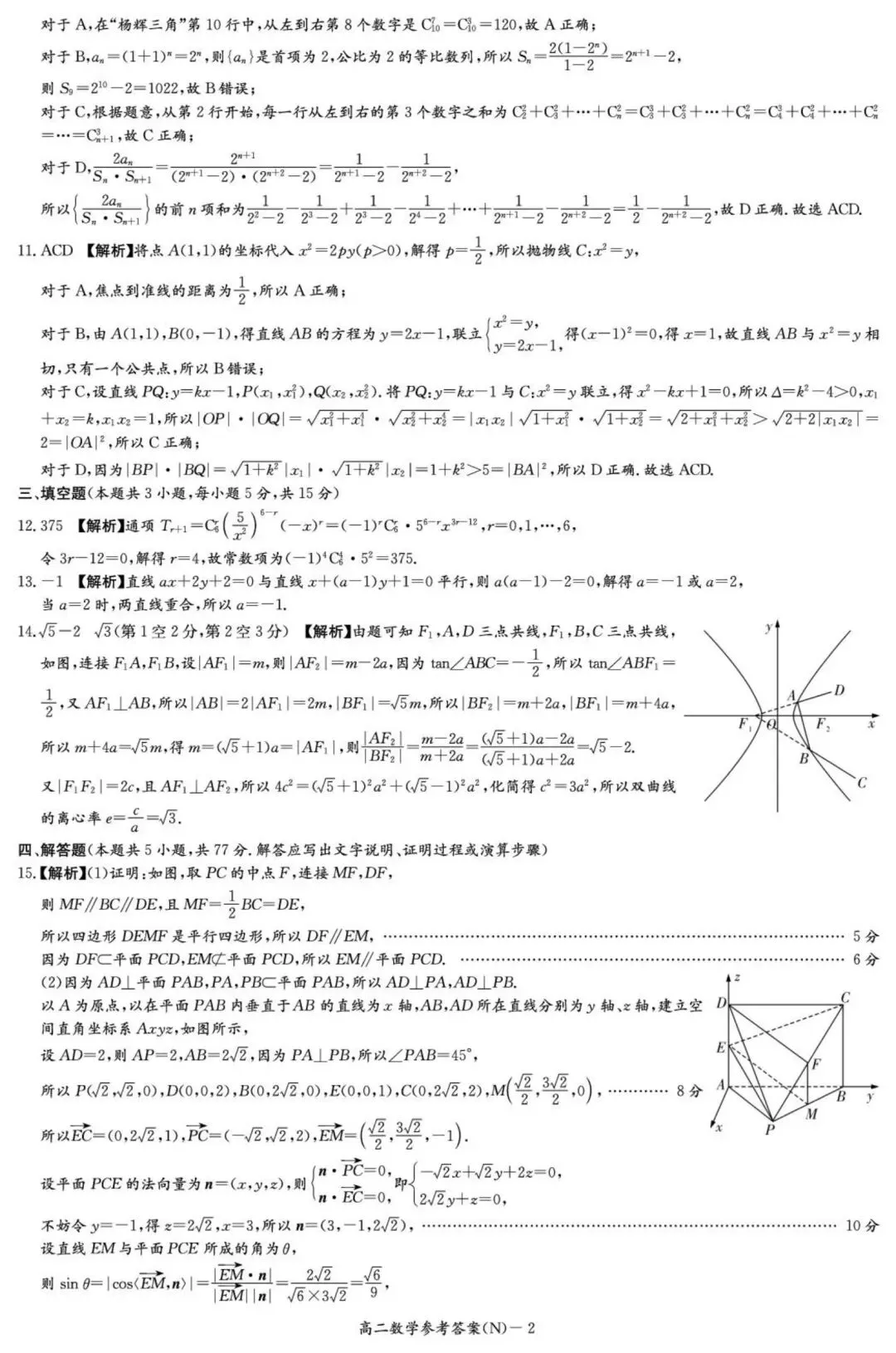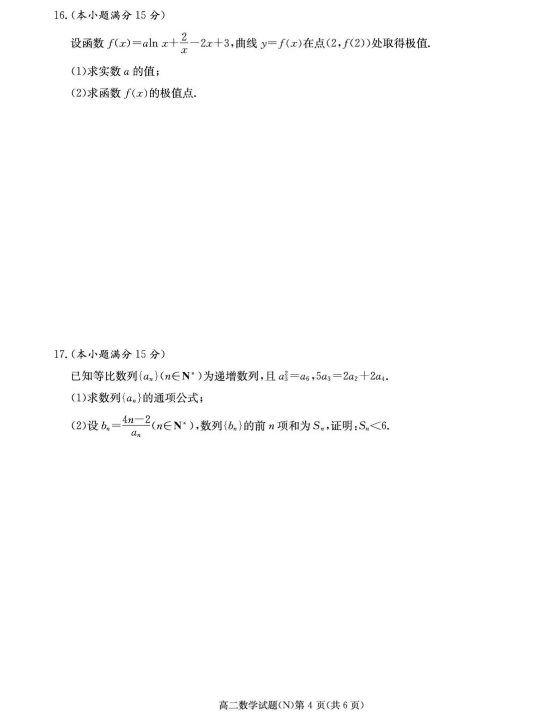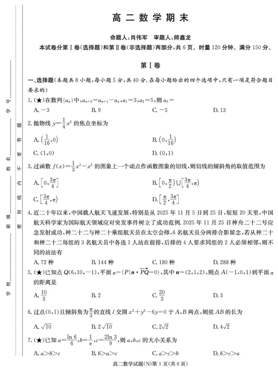 >【高二】202601湖南省长郡中学期末考试数学试题