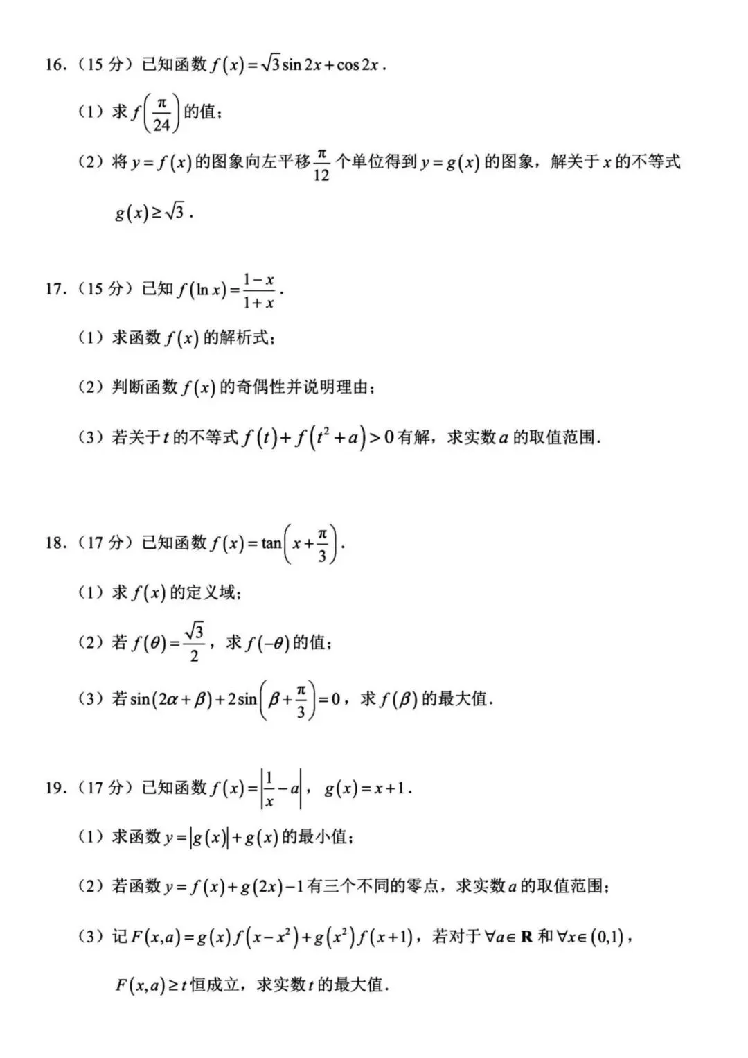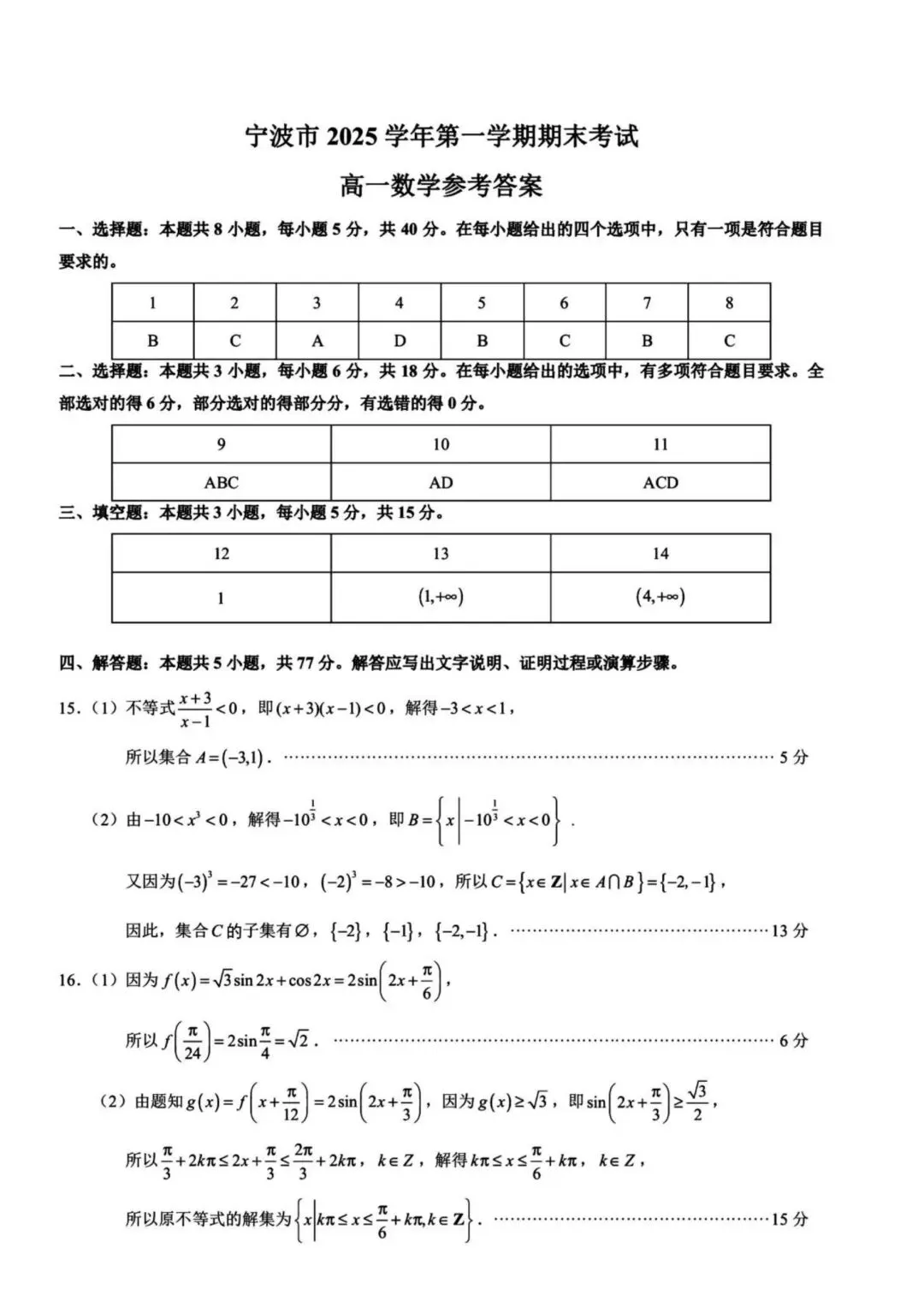 >【高一】202601浙江省宁波市期末考试数学试题